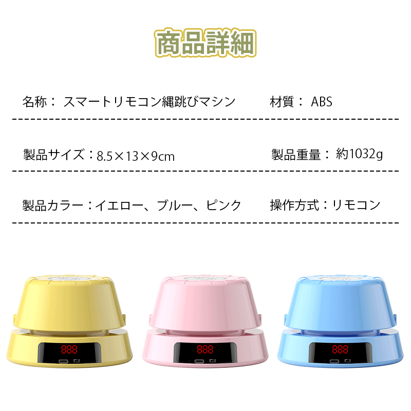 SNSで話題 縄跳び電動縄跳び 縄跳び ピンク ブルー イエロー
