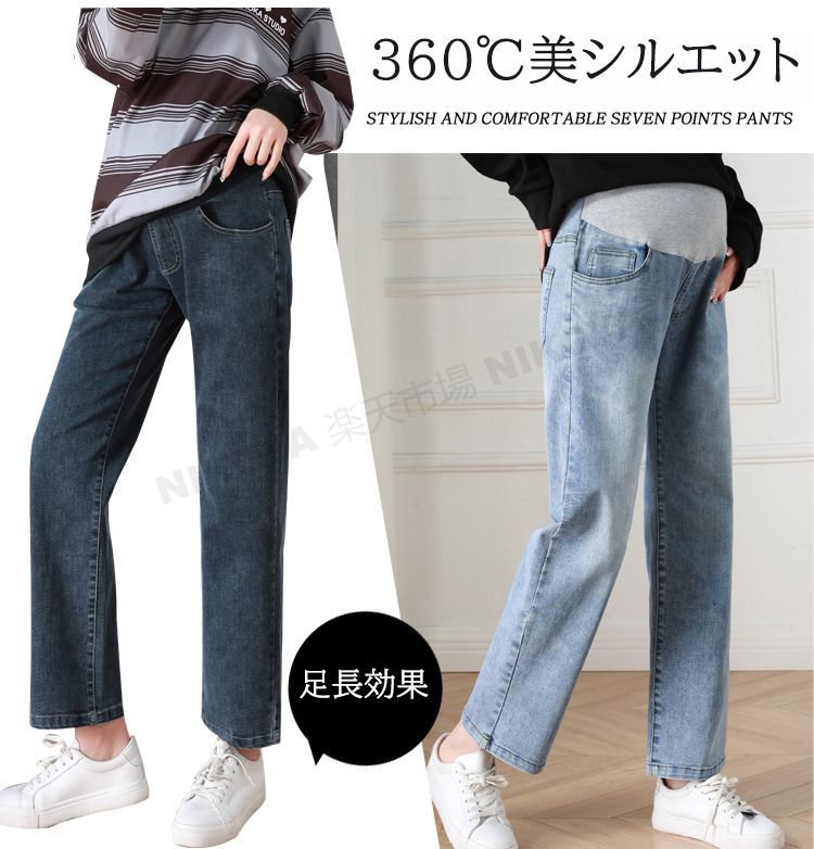 マタニティ デニム デニムパンツ ストレートデニム パンツ ストレッチ 大きいサイズ 美脚 かわいい おしゃれ ストレート マタニティパンツ マタニティズボン ワイド マタニティウェア 妊娠 ジーンズ