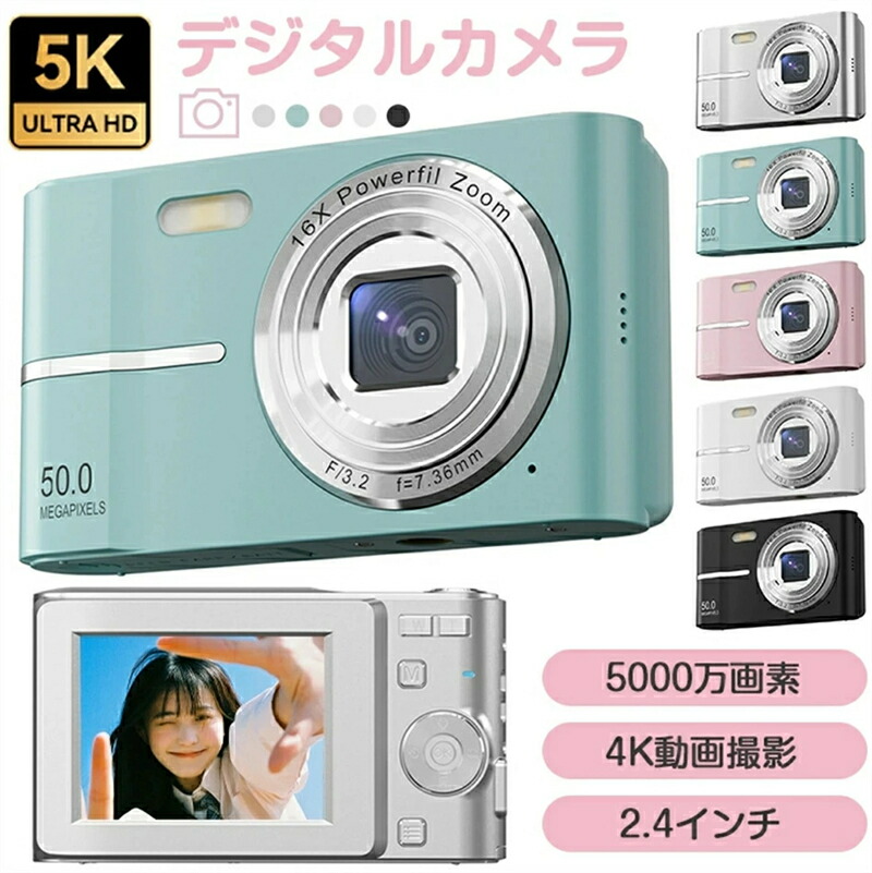 デジタルカメラ 5k 防水 防塵 耐街 ホワイト ブラック ピンク グリーン シルバー 不要 32GB+カードリーダー