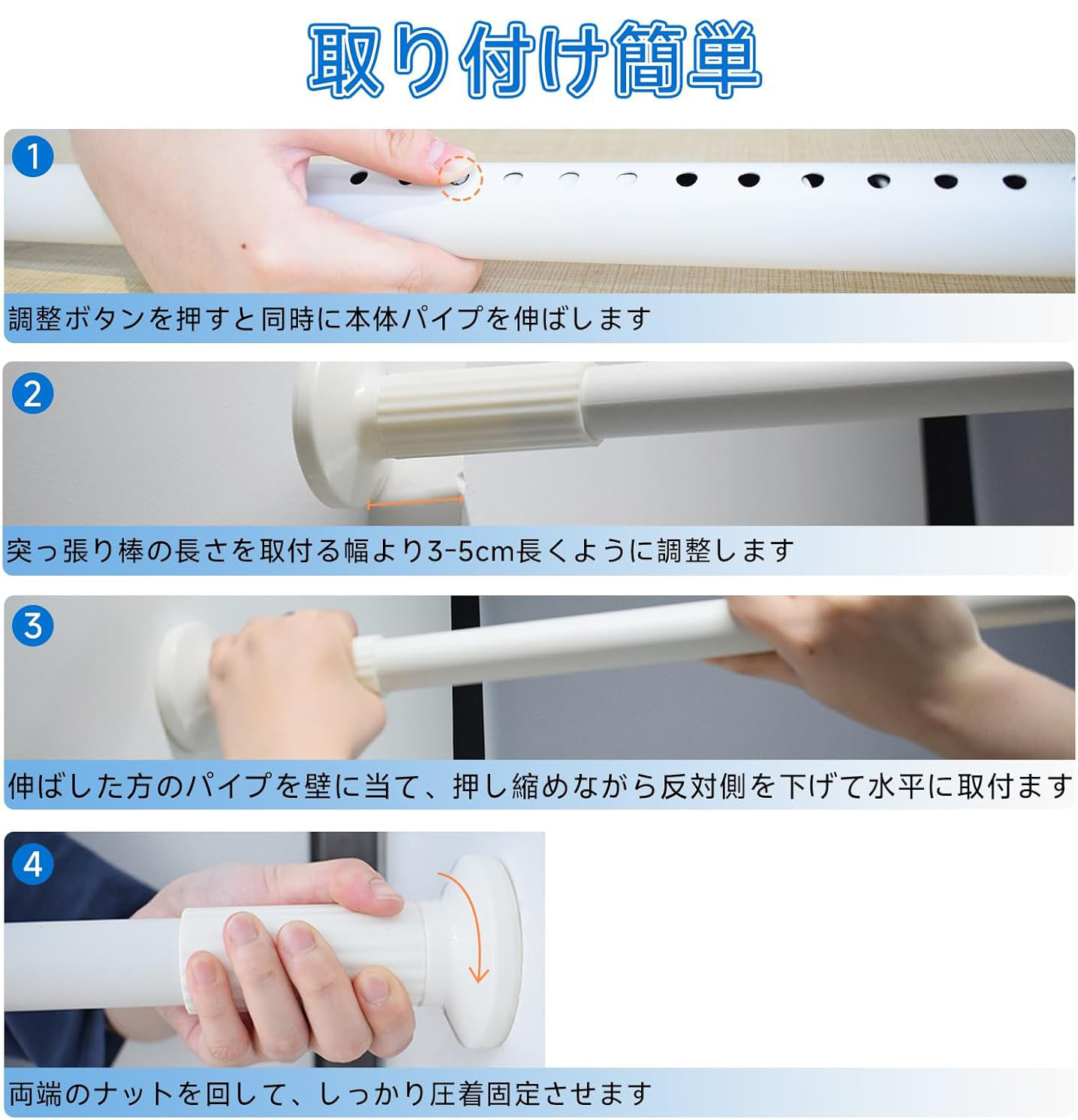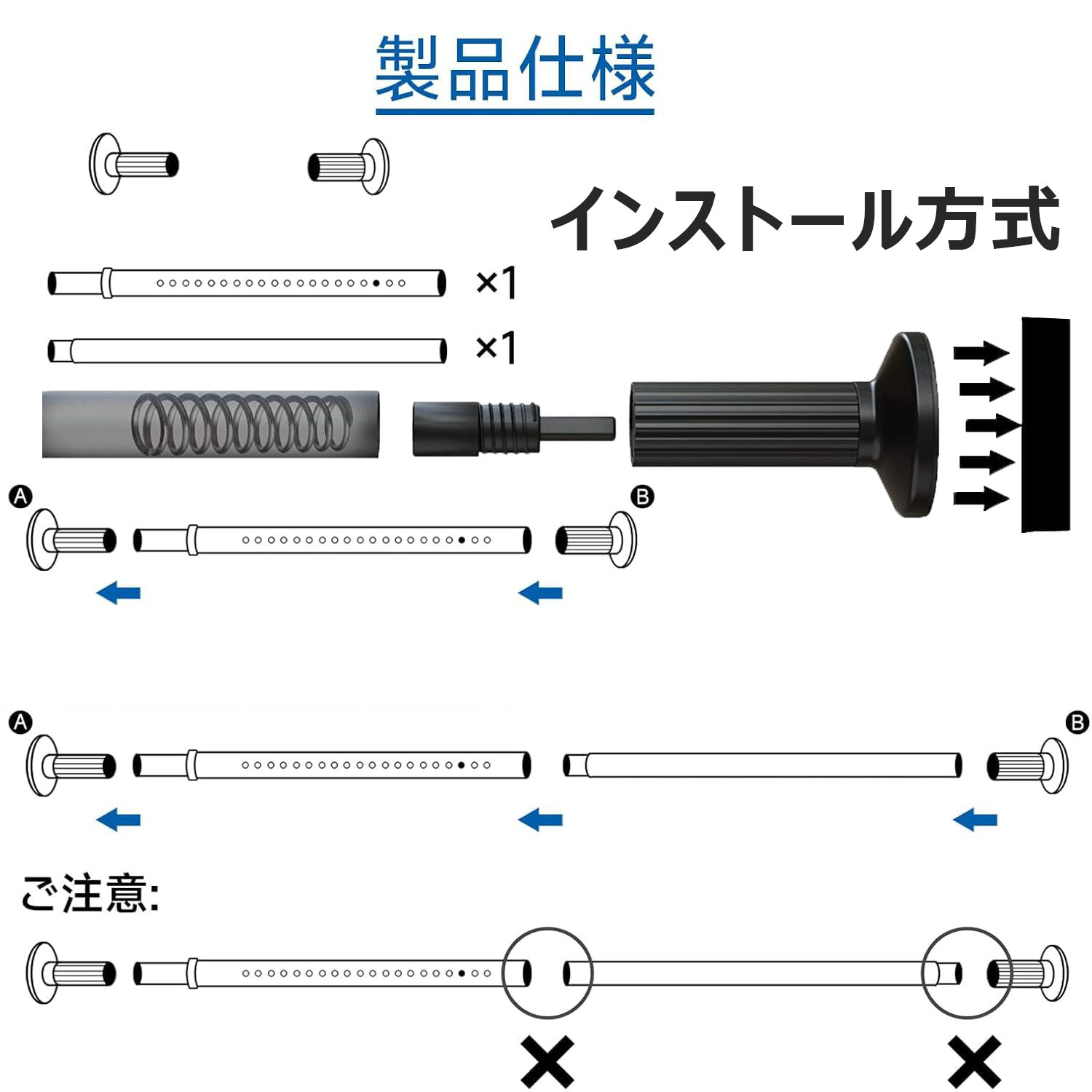 突っ張り棒 強力 92~430cm つ ホワイト ブラック グレー ブラウン ステンレス鋼 92-127cm 128-177cm 178-227cm 228-277cm 278-327cm 328-377cm 378-430cm