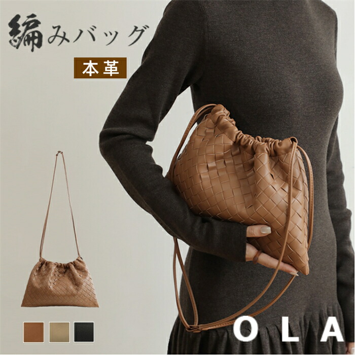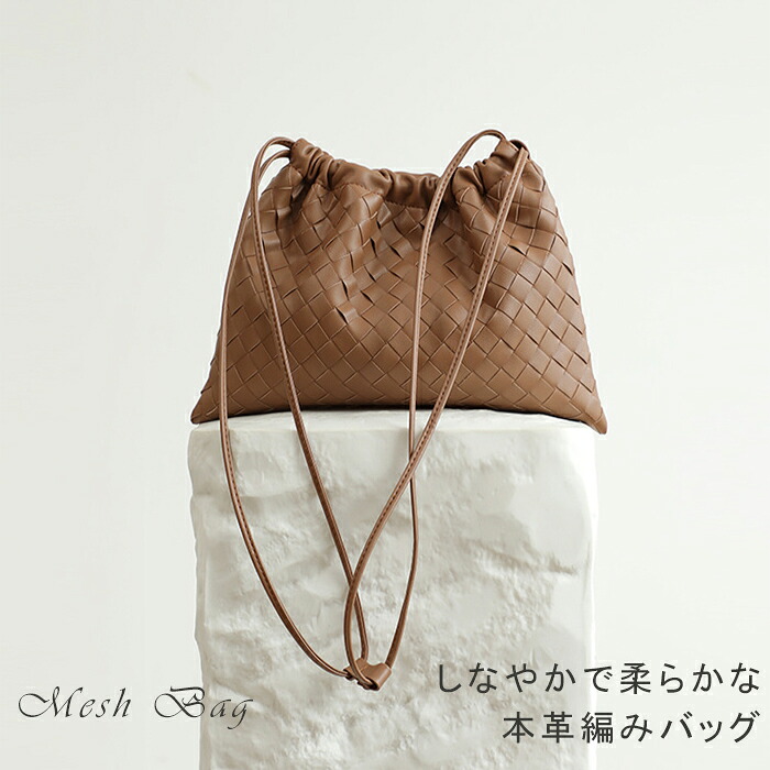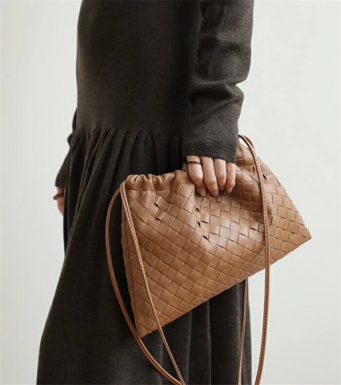 本革 編みバッグ 巾着 編み込み 小さ バッグ レディースバッグ ショルダーバッグ メッセンジャーバッグ 新作 ブラック ベージュ カラメル