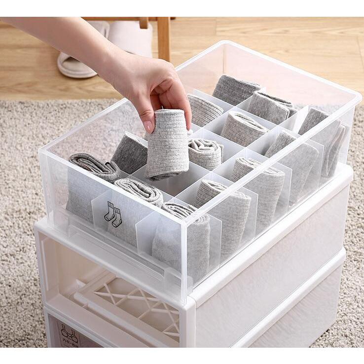 下着収納ケース ボックス 靴下 パンツ ホワイト ピンク ブルー サイズA(仕切りなし)37*14*25.5cm サイズB(15仕切り)37*14*25.5cm