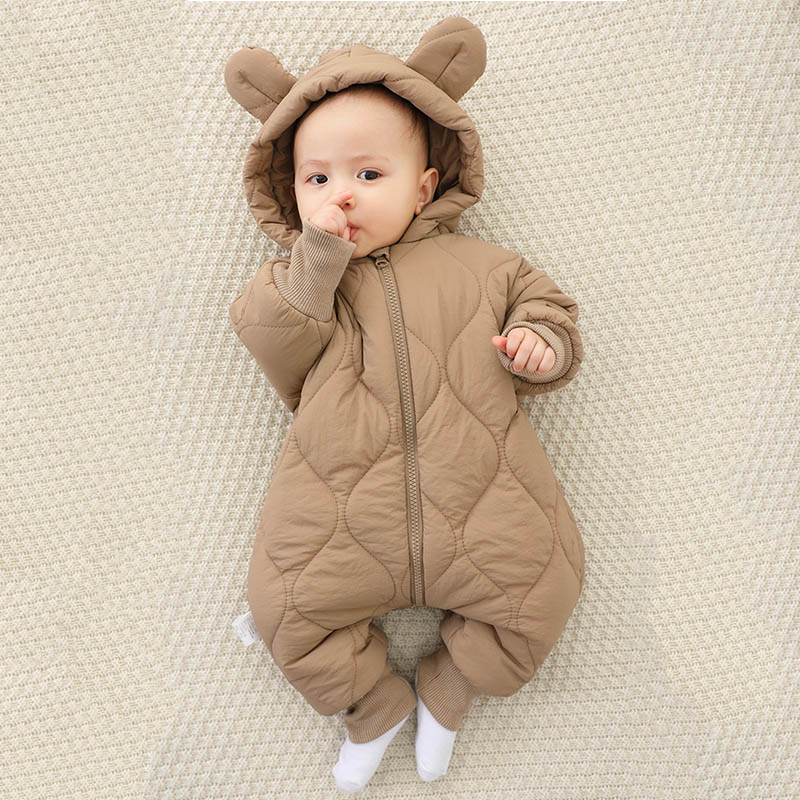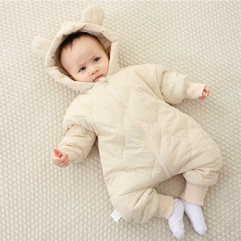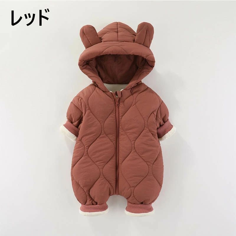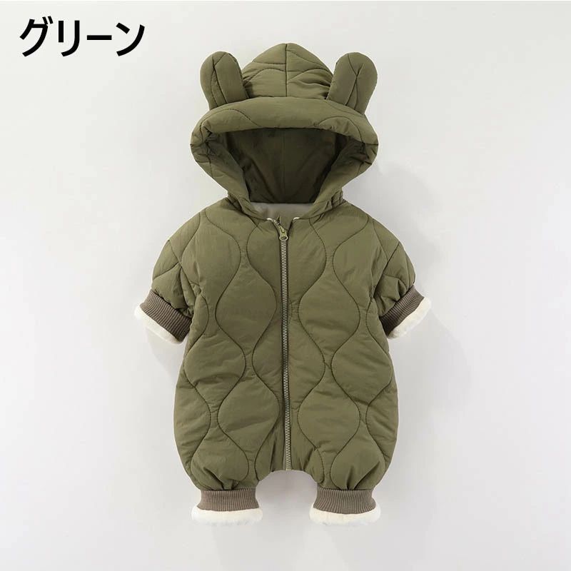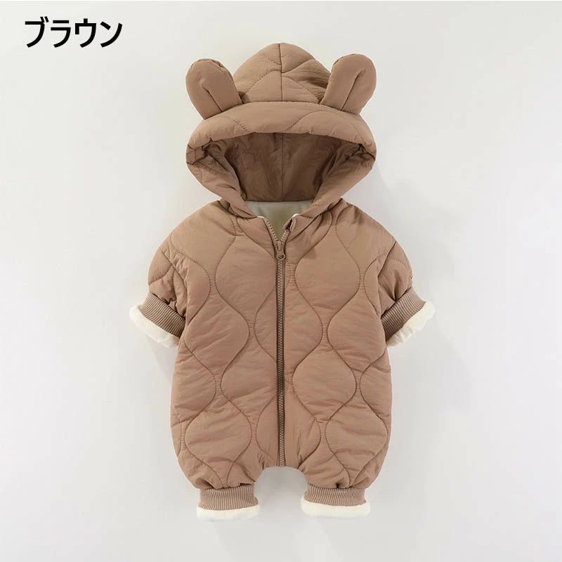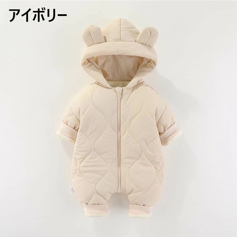 ジャンプスーツ ベビー カバーオール 耳付き くま耳 フード付き 中綿 裏ボア 裹起毛 アウター ロンパース 女の子 男の子 ベビー服 新生児 子供服 キッズ 長袖 出産祝い 撥水 防水 防寒 雪遊び