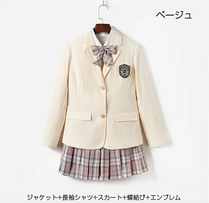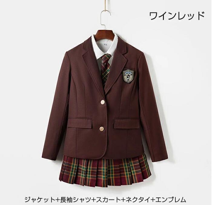 5色 卒業式 スーツ 女の子 制服 卒服 小学生 なんちゃって制服 5点セット ブレザー 小学校女子 入学式 フォーマルスーツ中学生 高校生 ピアノ発表会 シャツ チェック柄スカ 大きいサイズ