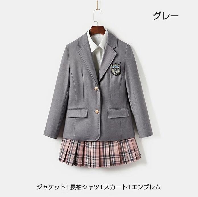 ◆中学生や高校生のためにデザインされたこのセットは、チェック柄のプリーツスカートとブレザーを含む4点または5点のアイテムで構成されています。