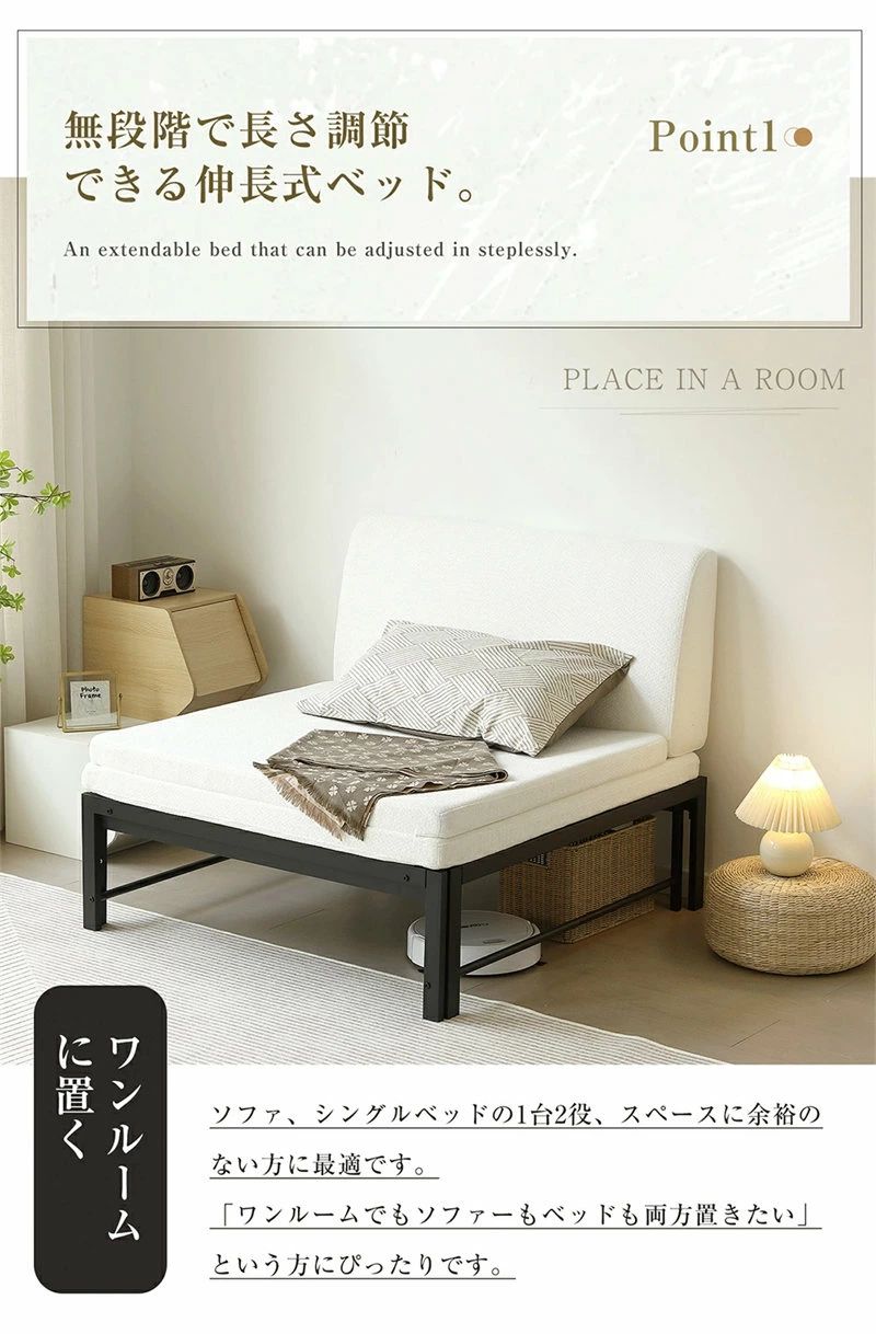 ソファベッド 伸長式ベッド シングル ブラック ホワイト