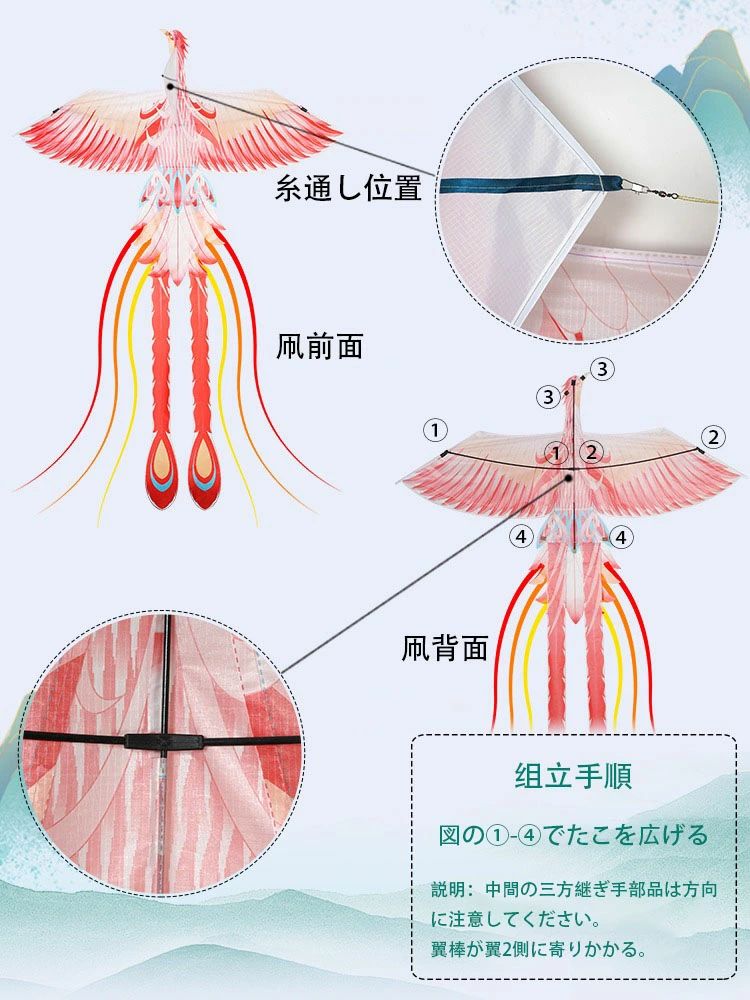 中国風 鳳凰凧 カイト たこ 凧 カラ おもちゃ ゲーム 特集 1.8mレッド鳳凰 1.8mブルー鳳凰 2.3mレッド鳳凰 2.3mブルー鳳凰 なし(凧だけ) 300m 600m 1000m