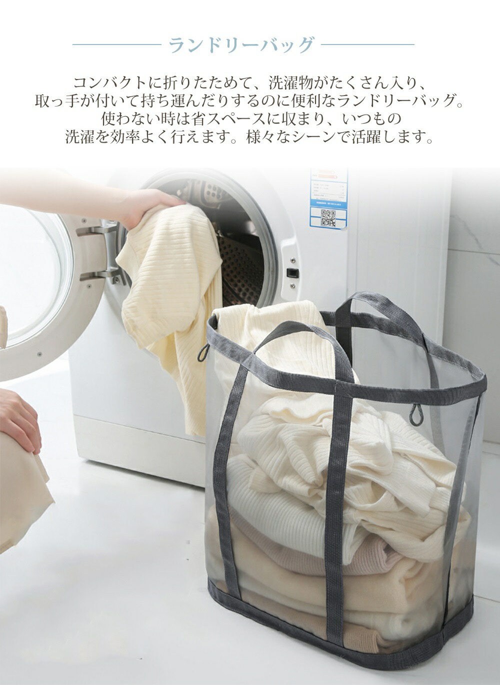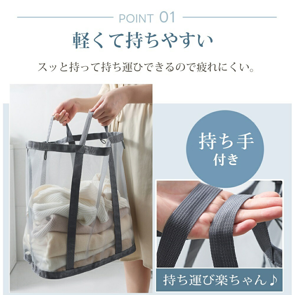 洗濯かご 折りたたみ ランドリーバッグ ブラック ライトグレー