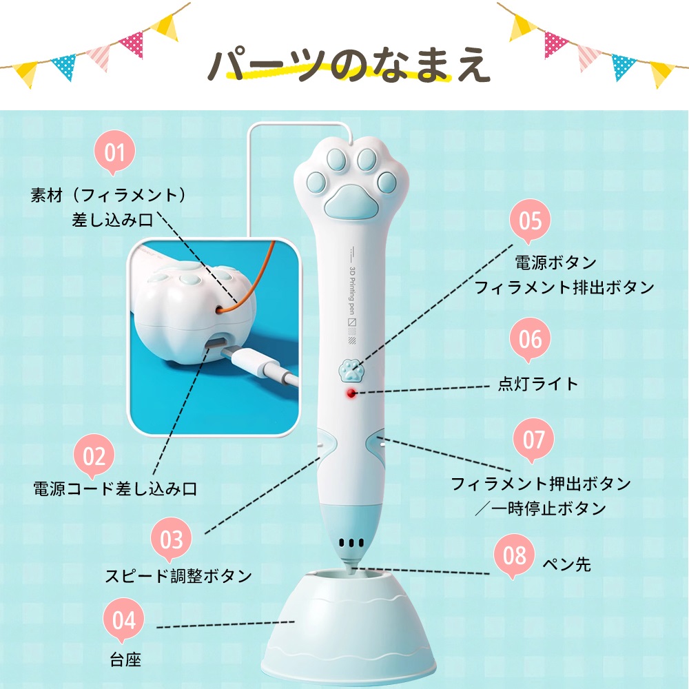 3Dペン 子供 低温 3dペン 肉球 文房具 事務用品 筆記具 筆ペン 超目玉商品 ピンク ブルー 3本 13本 23本 33本