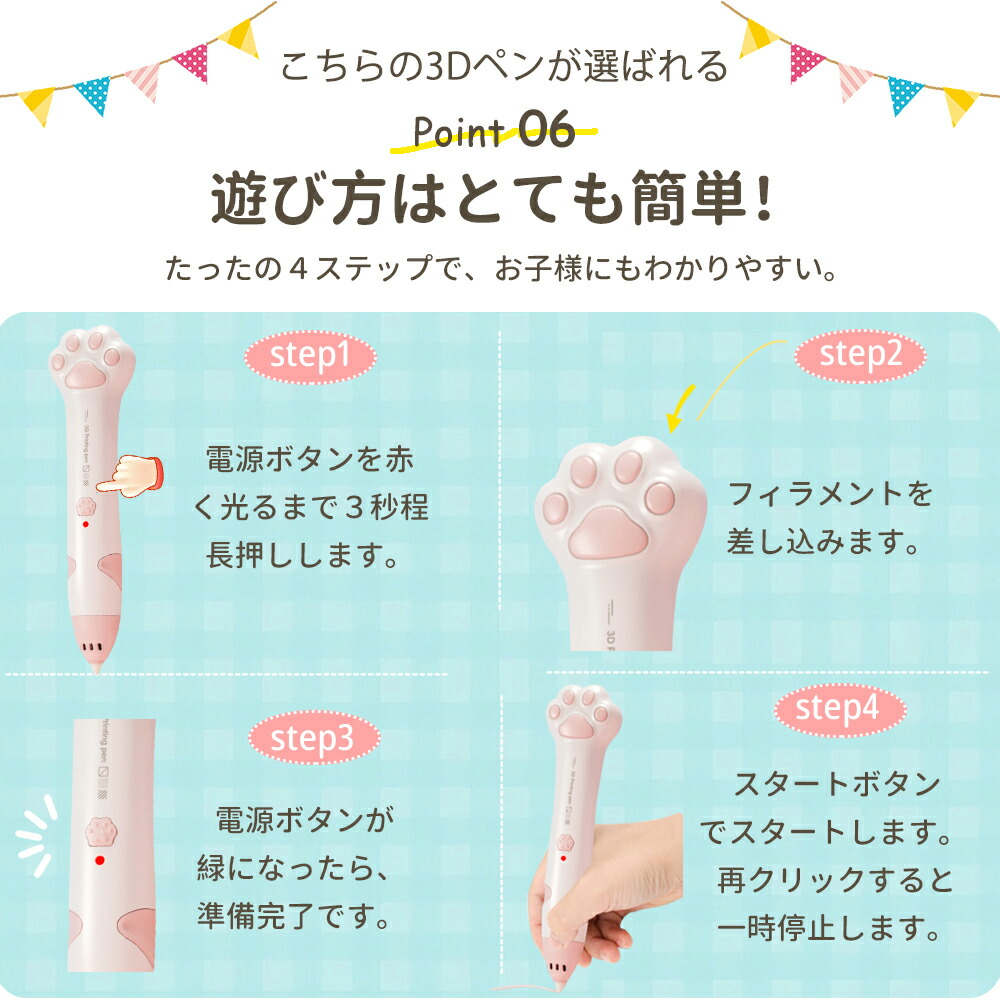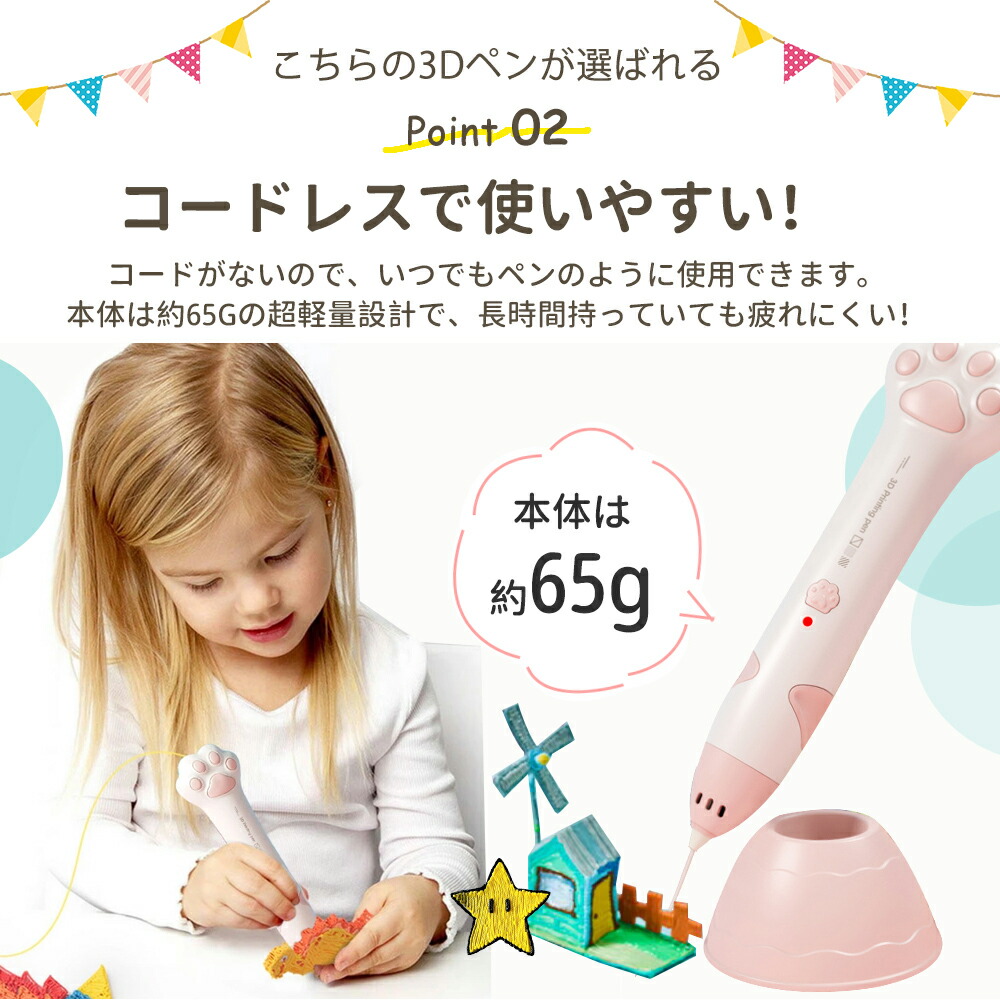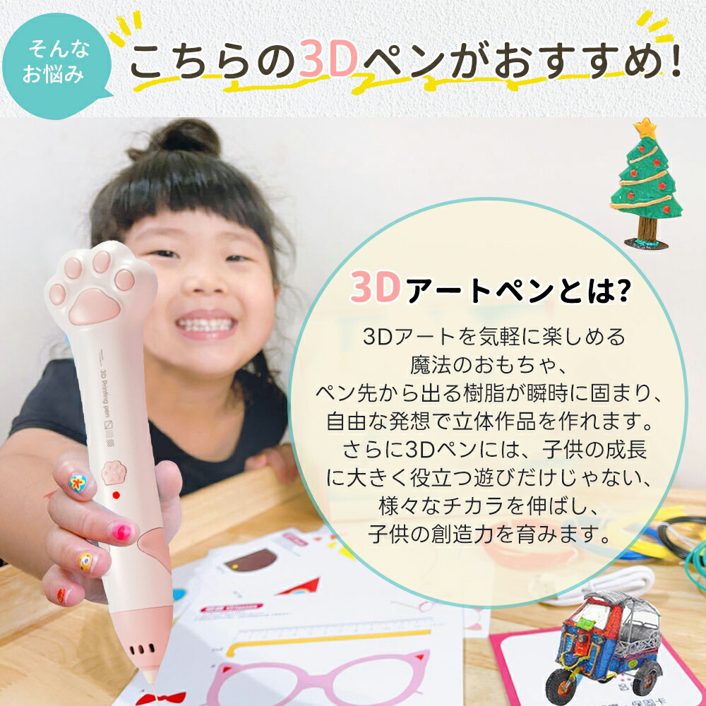 3Dペン 子供 低温 3dペン 肉球 コードレス 3Dアートペン 5m×10色 PCLフィラメント 3Dペンセット 3dペンDIY 手作り 立体絵画 想像力 USB充電 子供おもちゃ 知育玩具 創造力