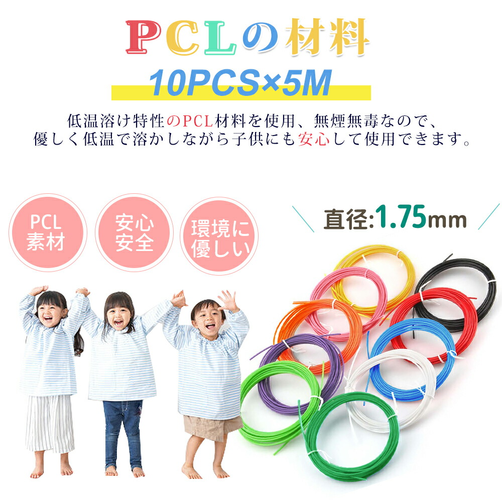 3Dペン フィラメント 低温 1.75mm 替え芯 子供 PCL 選べる 10色 単色 5m 低温設計 おもちゃ 知育 玩具 安全 3Dプリンター 3Dプリンターペン 子ども 子供向け 低温設計 親子 工作 DIY ギフト 大人 立体 アート 絵 誕生日 知育玩具 女の子 男の子 安全 立体的 工作キット 小学生 3dペン フィラメント PCL 低温 素材 5m 3D プリンター 素材コード 具材 お絵描き 立体 材料 知育 アートペン