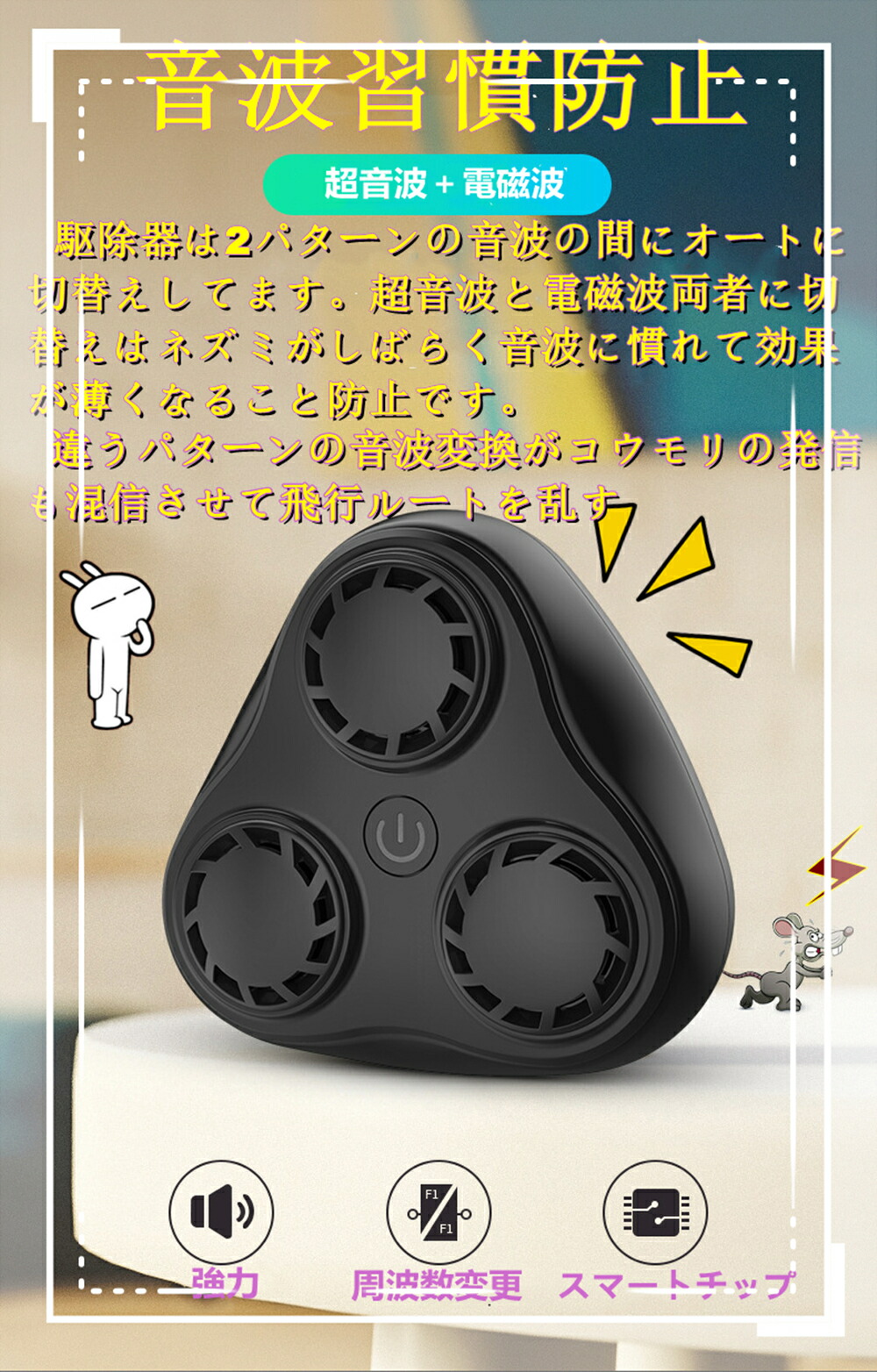 ネズミ駆除 超音波 強力 ねずみ駆除 ネズミ忌避機 超音波機器 害獣害虫駆除 コウモリ回避 超音波電磁波 強力忌避 害虫駆除器 3スピーカー強化型 ゴキブリ ねずみ 便利省エネ 静音 コ コウモリ対策