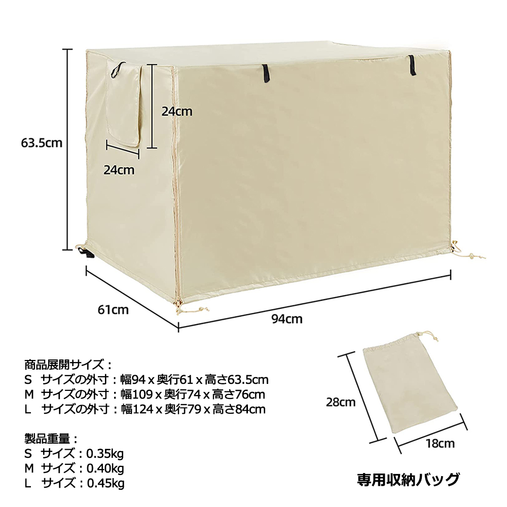 ペットサークルカバー 犬用ケージカバー ペット ペットグッズ 特集 S(94x61x63.5) M(109x74x76) L(124x79x84) ベージュ ブラック