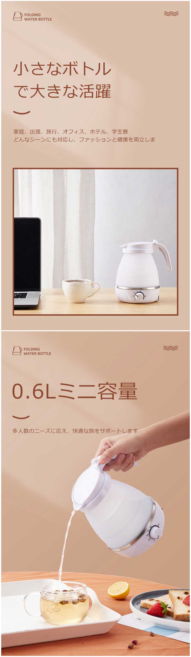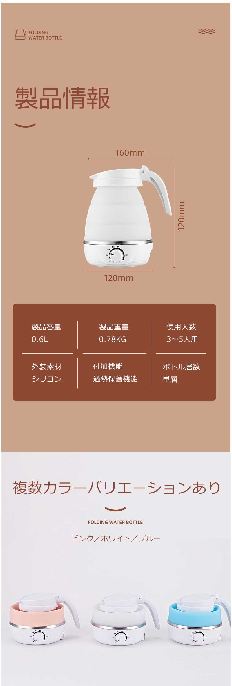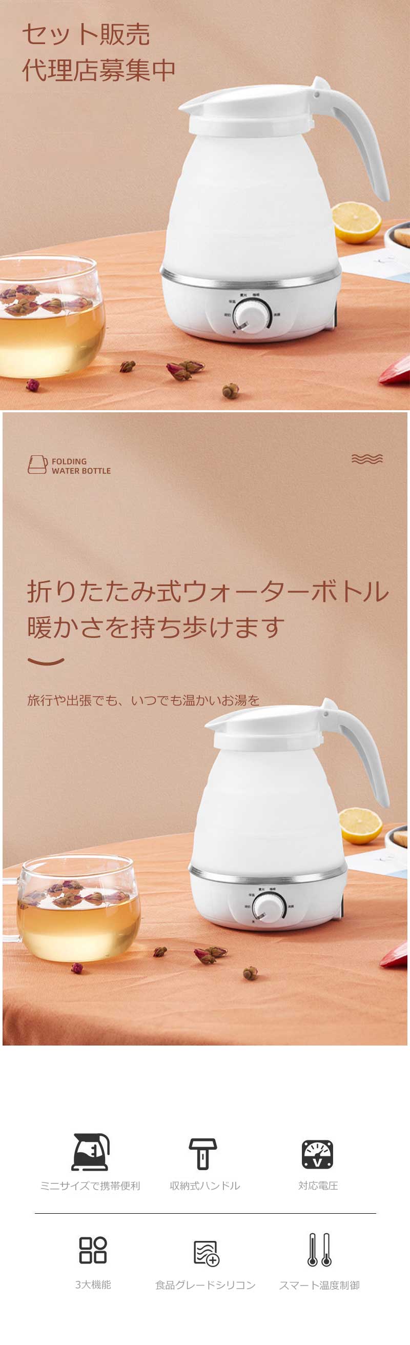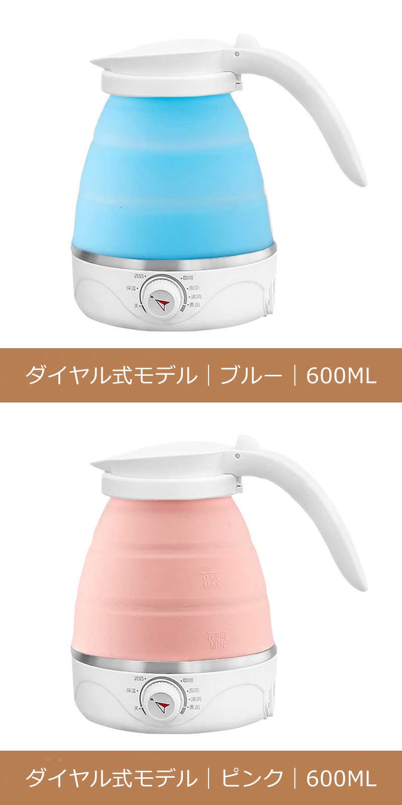 折りたたみケトル 海外対応 電気ケトル ホワイト ブルー ピンク