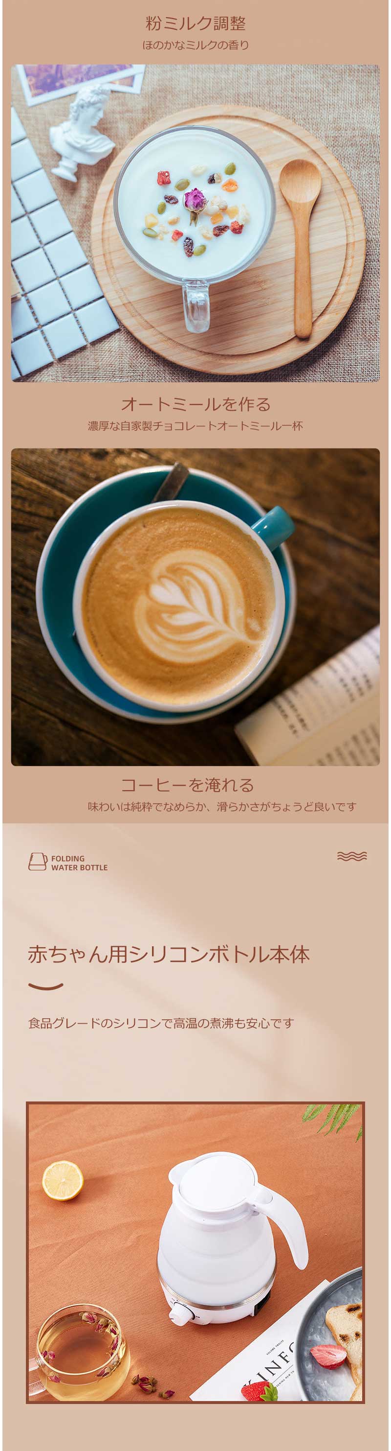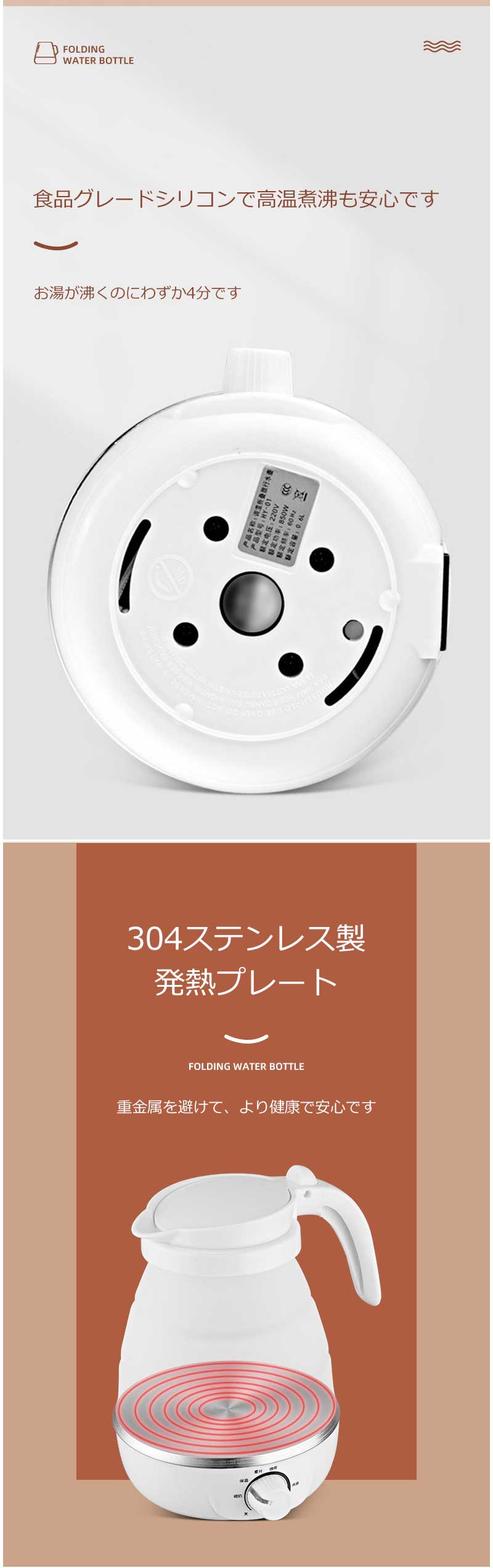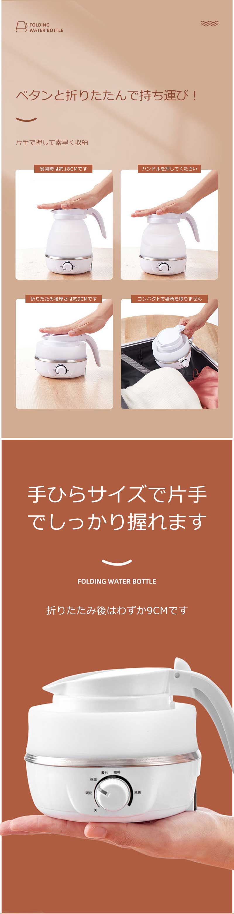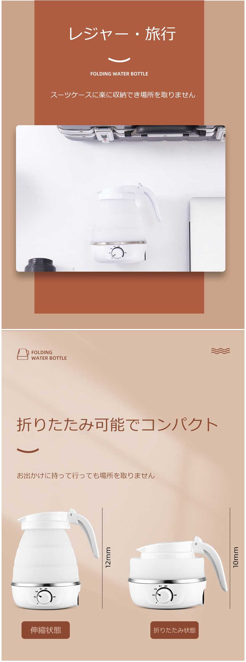 折りたたみケトル 海外対応 電気ケトル ホワイト ブルー ピンク