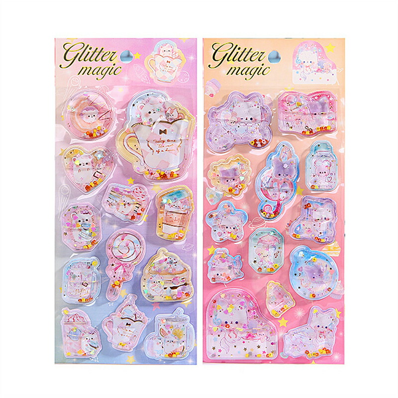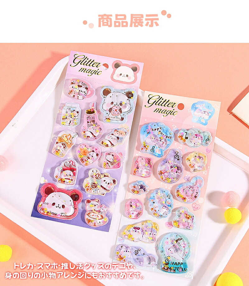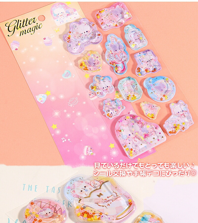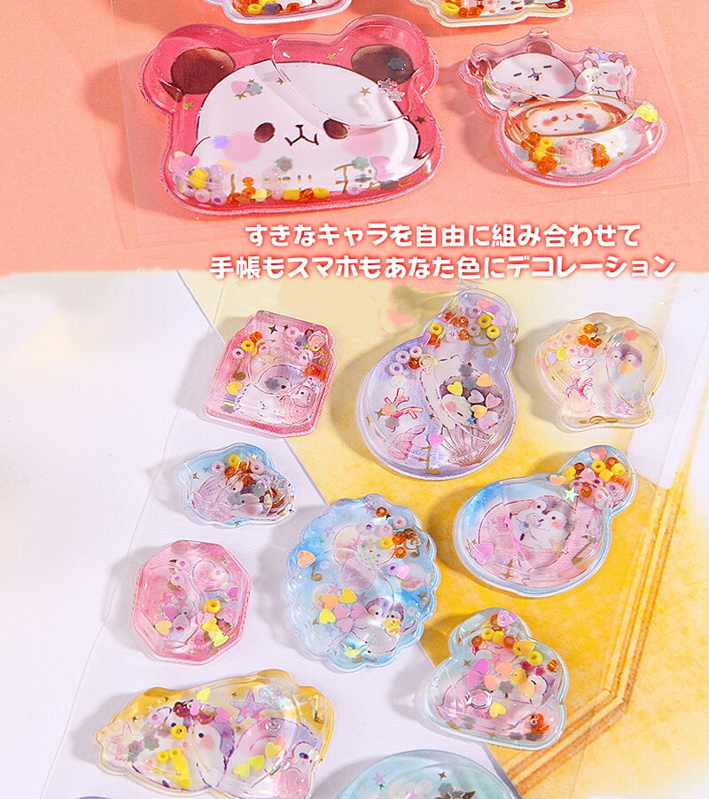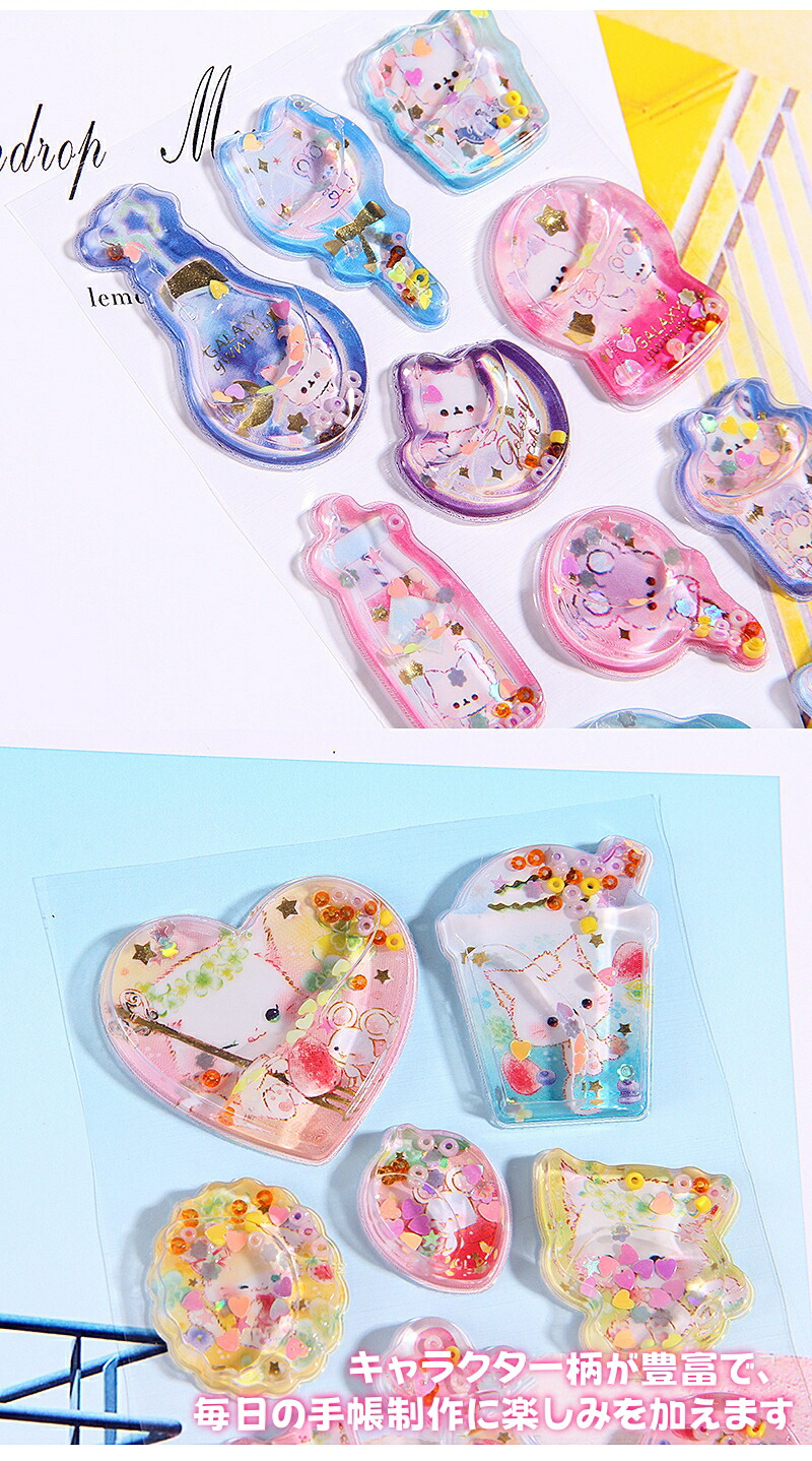 ウォーターシール ぷっくりシール ぷくぷくシール ドロップシール キャラクター 3D 立体シール 平成レトロ ドロップ ぷっくり つやつや キラキラ かわいい 動物 女の子 平成女子 シール ぷくぷく
