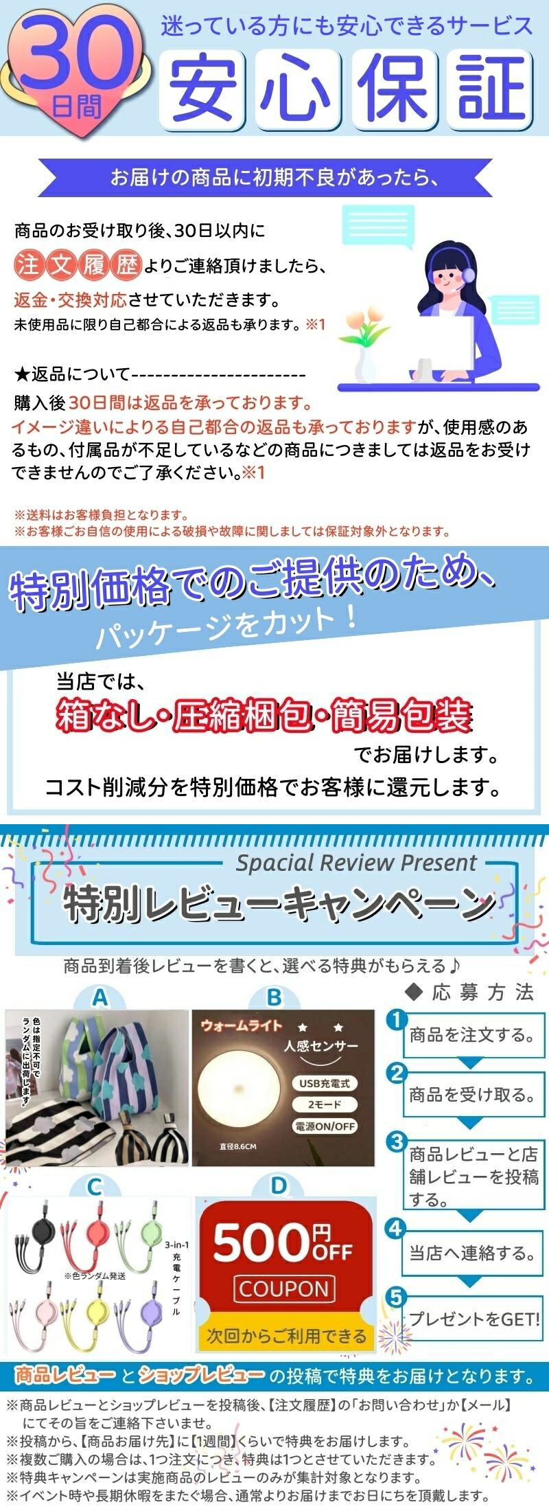 初期不良の場合は30日以内なら返品交換させて頂きます。安心してご購入くださいませ。