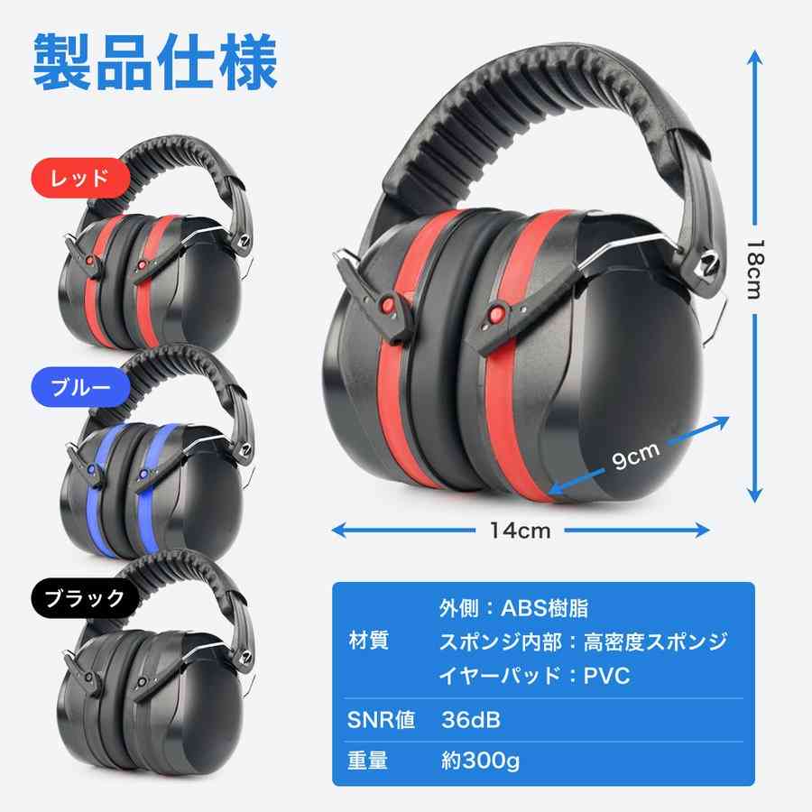 防音イヤーマフ 最強 子供 大人 3m レッド ブルー ブラック