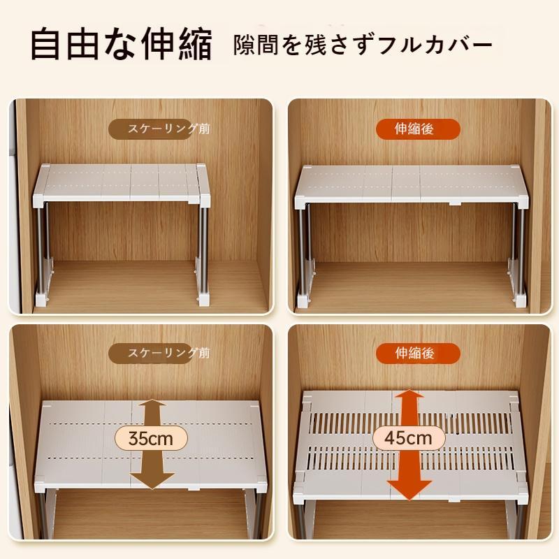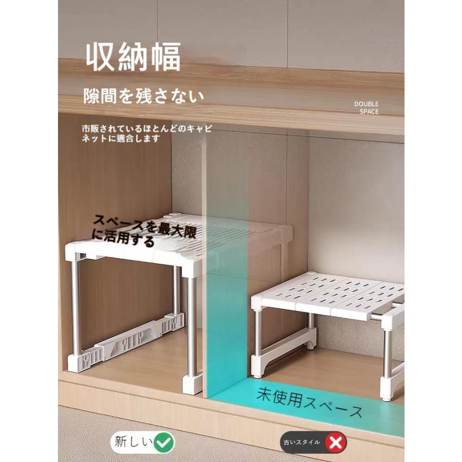 伸縮棚 積み重ね つっぱり 幅 27-108cm 高さ 22cm 32cm 奥行 24cm 42cm キッチン シンク下 クローゼット 押入れ 通気性 収納 防水 丈夫 整理棚 ワイド 空間活用 頑丈