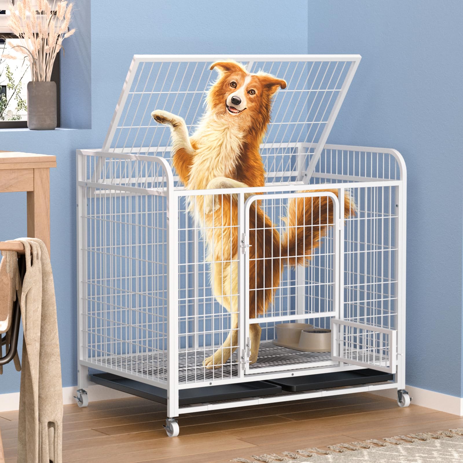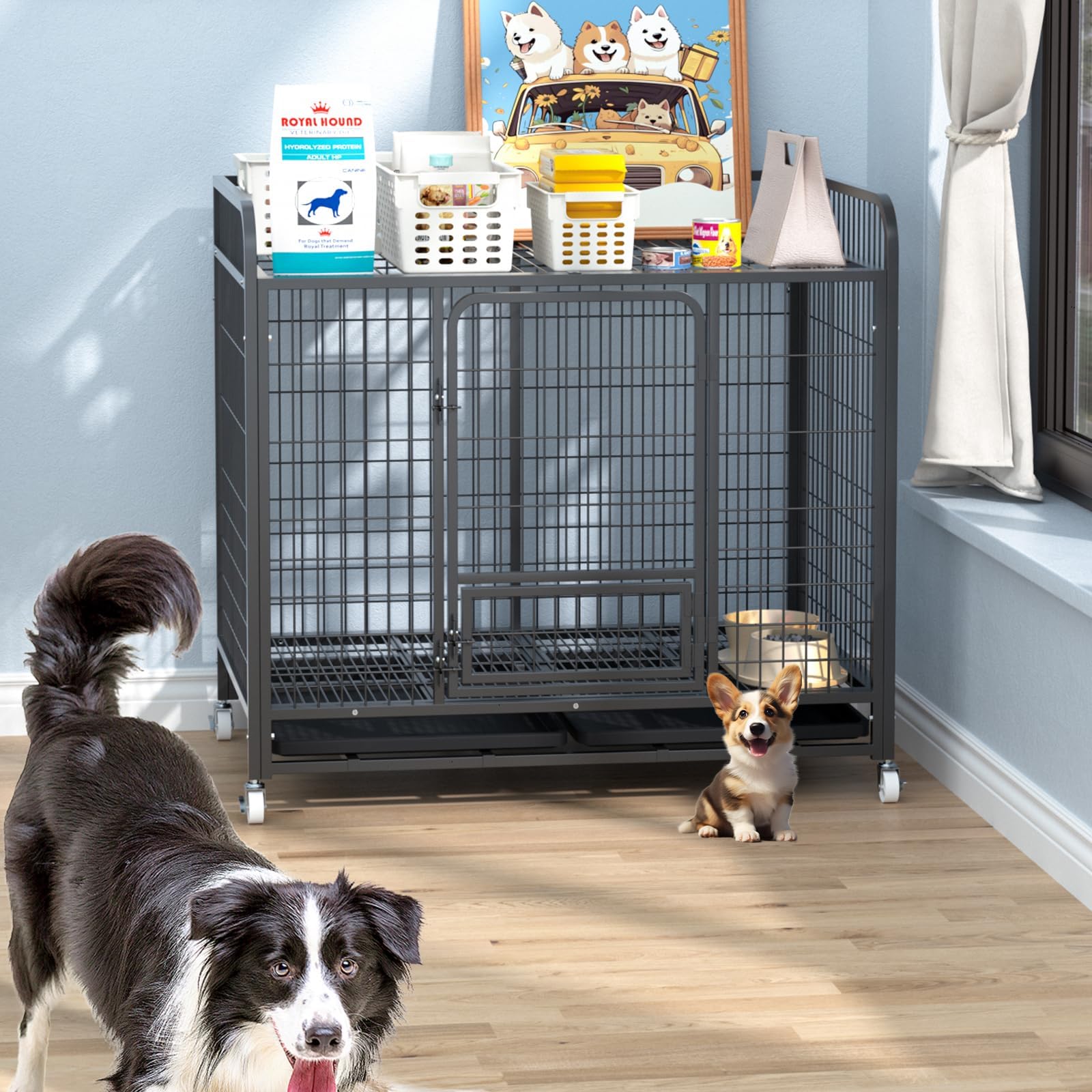 犬のケージ 屋根付き 犬 サークル ペットサークル ケージ 折りたたみ可能 キャスター付き 引き出し式トレー 組立簡単 移動便利 掃除簡単 犬用 小型犬 中型犬 脱出防止 室内外兼用 ペット用 大型犬