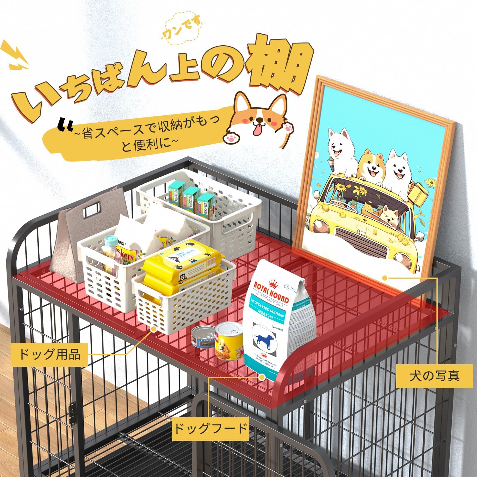 【優れた素材】高品質の材料で作られ、頑丈で耐摩耗性があり、犬がかじることによる変形を心配する必要はありません。底部の耐荷重が高く、あらゆるサイズの犬に容易に対応。サビにも強く室外室内両方に兼用します。頑丈で耐久性がある、あらゆる種類の小中型動物に適している。(ヒント:組み立て時には、ネットの膨らんだ面を外側に取り付ける必要があります。そうしないと、ネジが締まらなかったり天板が組み立てられなかったりする問題が発生します。)