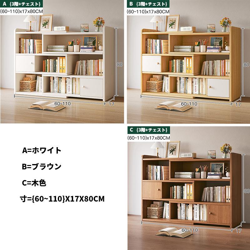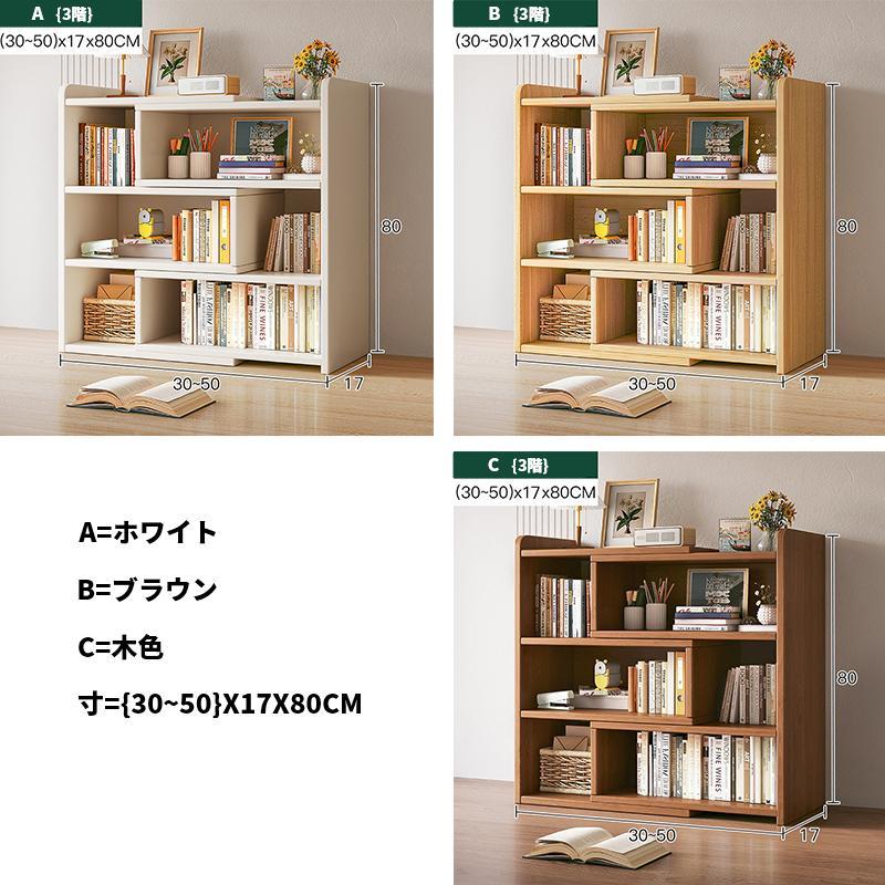 オープンシェルフ 伸縮 収納棚 本棚 A B C 2階【30~50】X17X60CM 2階【40~70】X17X60CM 3階【30~50】X17X80CM 3階【40~70】X17X80CM 3階【60~110】X17X80CM 3階+チ工ス卜【60~110】X17X80CM