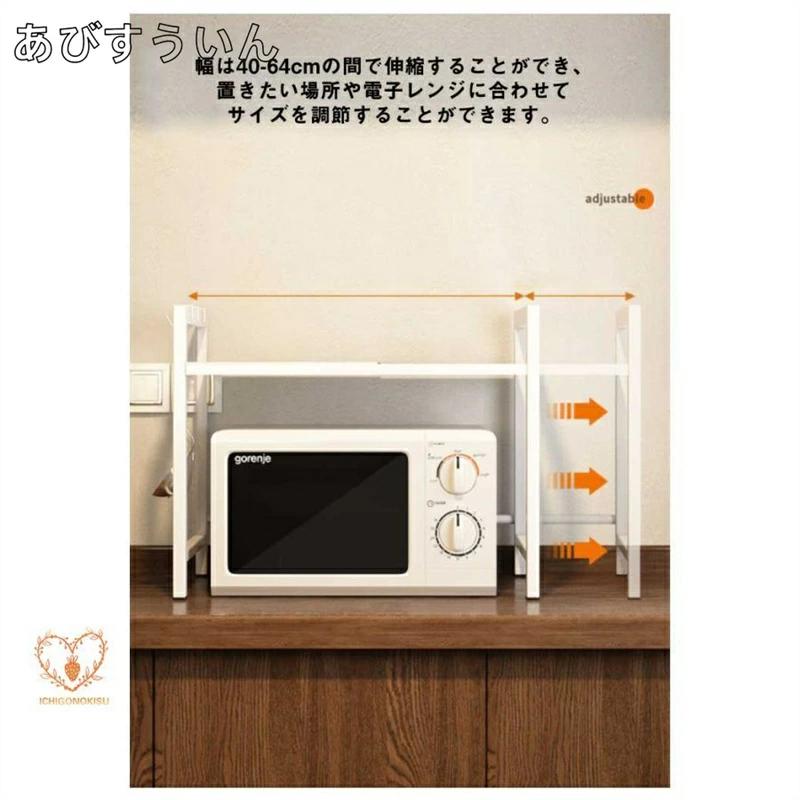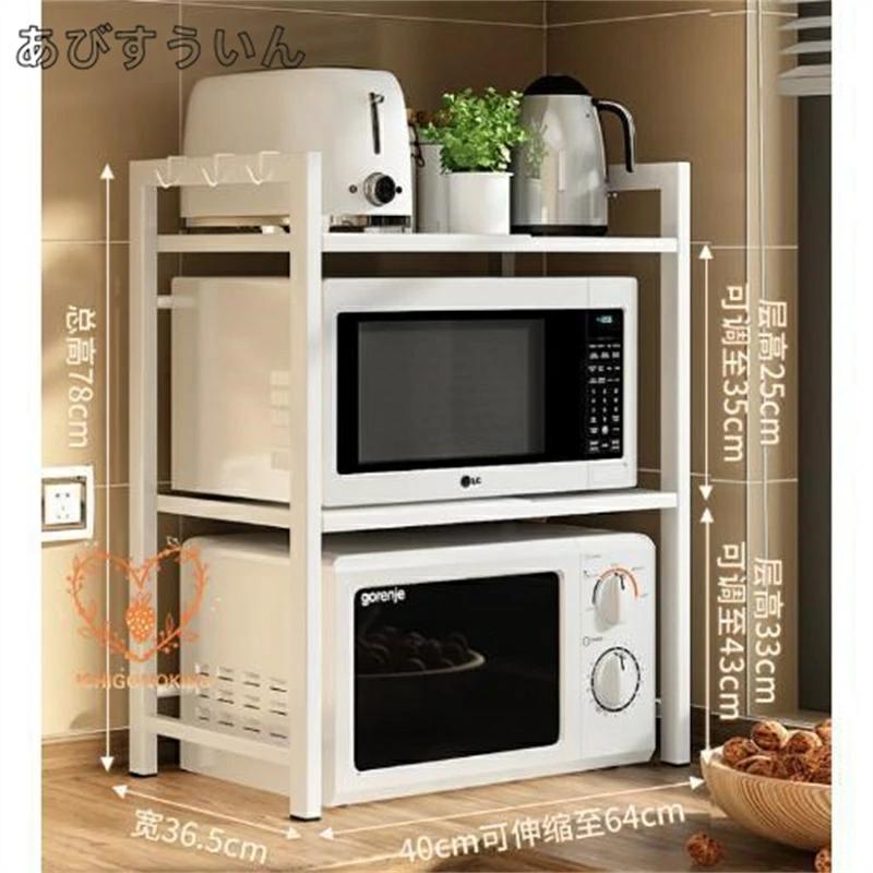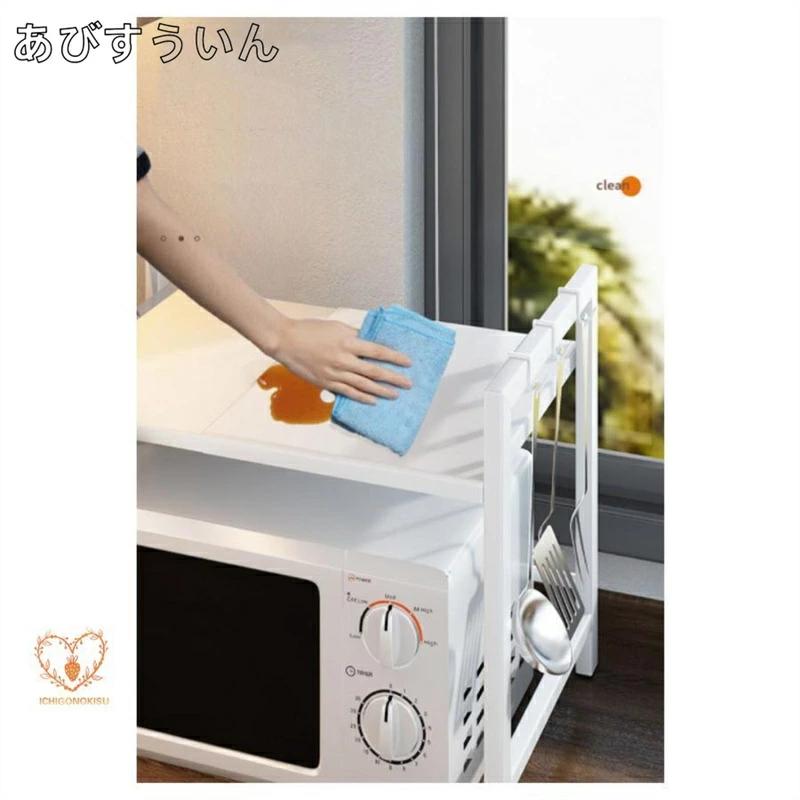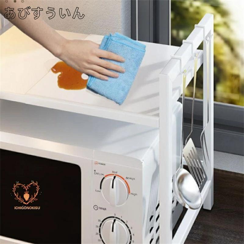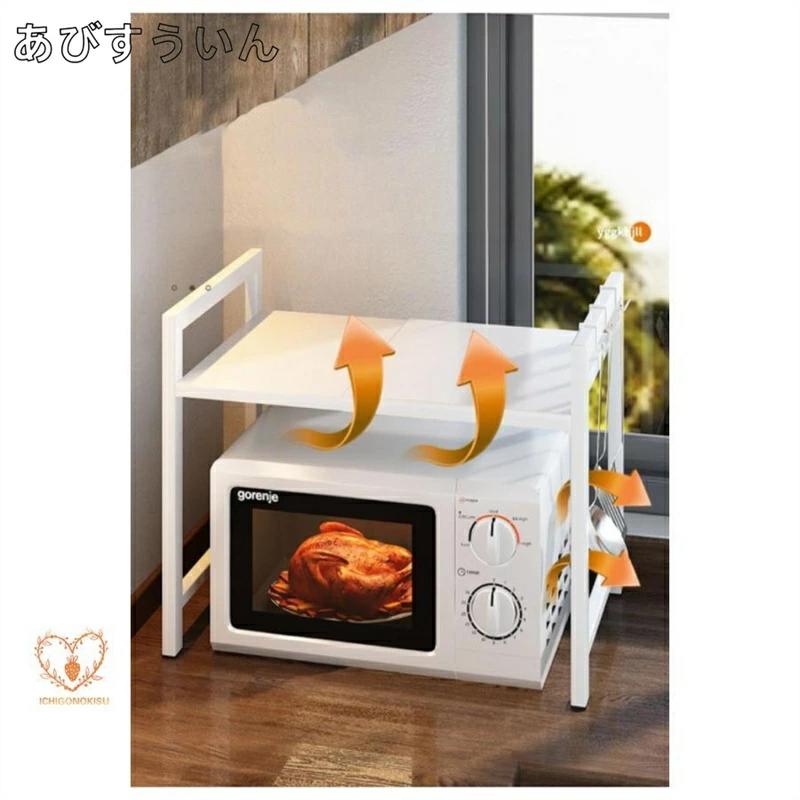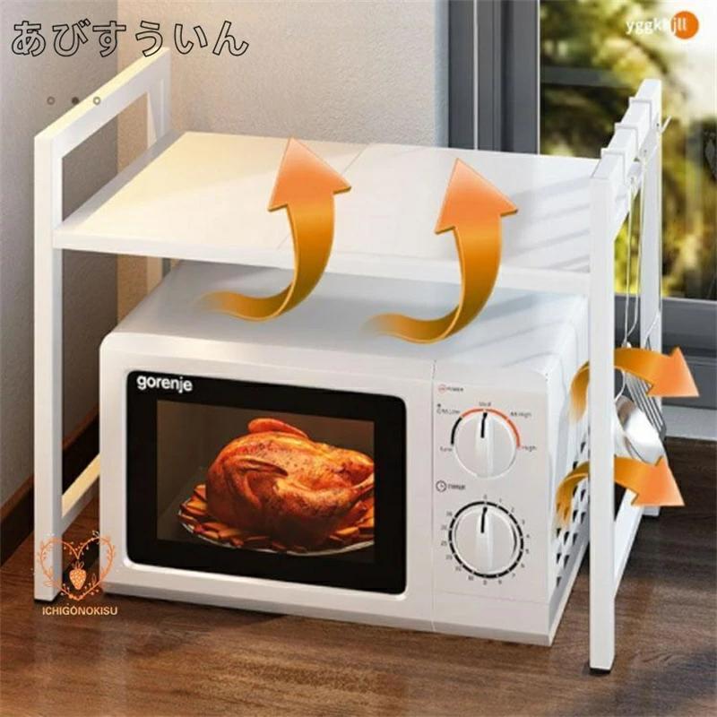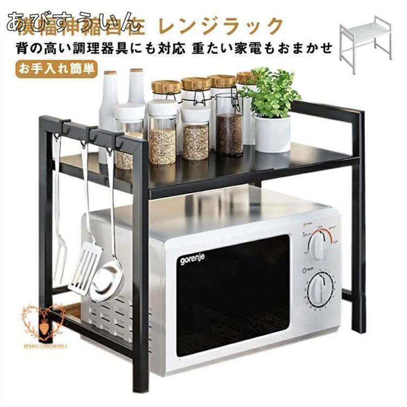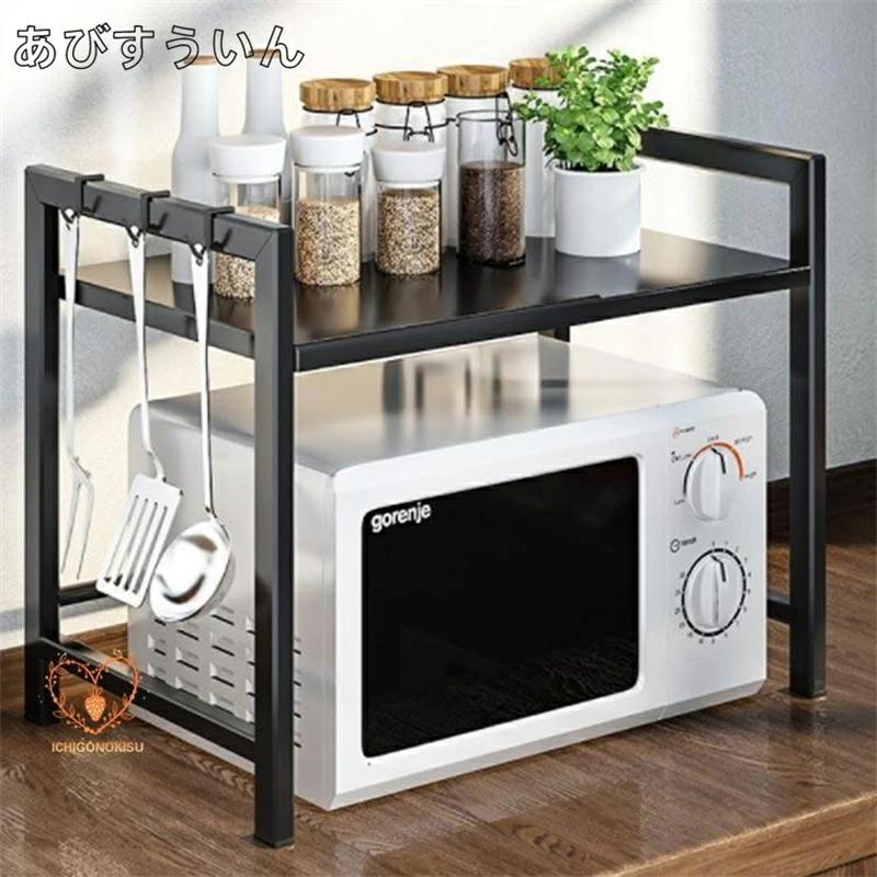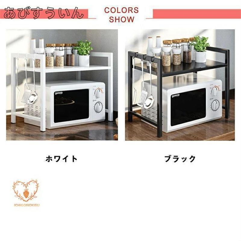 レンジ上ラック 1段 2段高さ調整 キ キッチン用品 食器 調理器具 新作 ホワイト ブラック 1段フック6個付 2段フック6個付