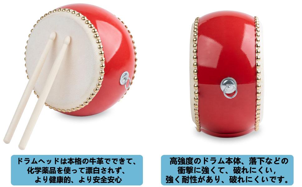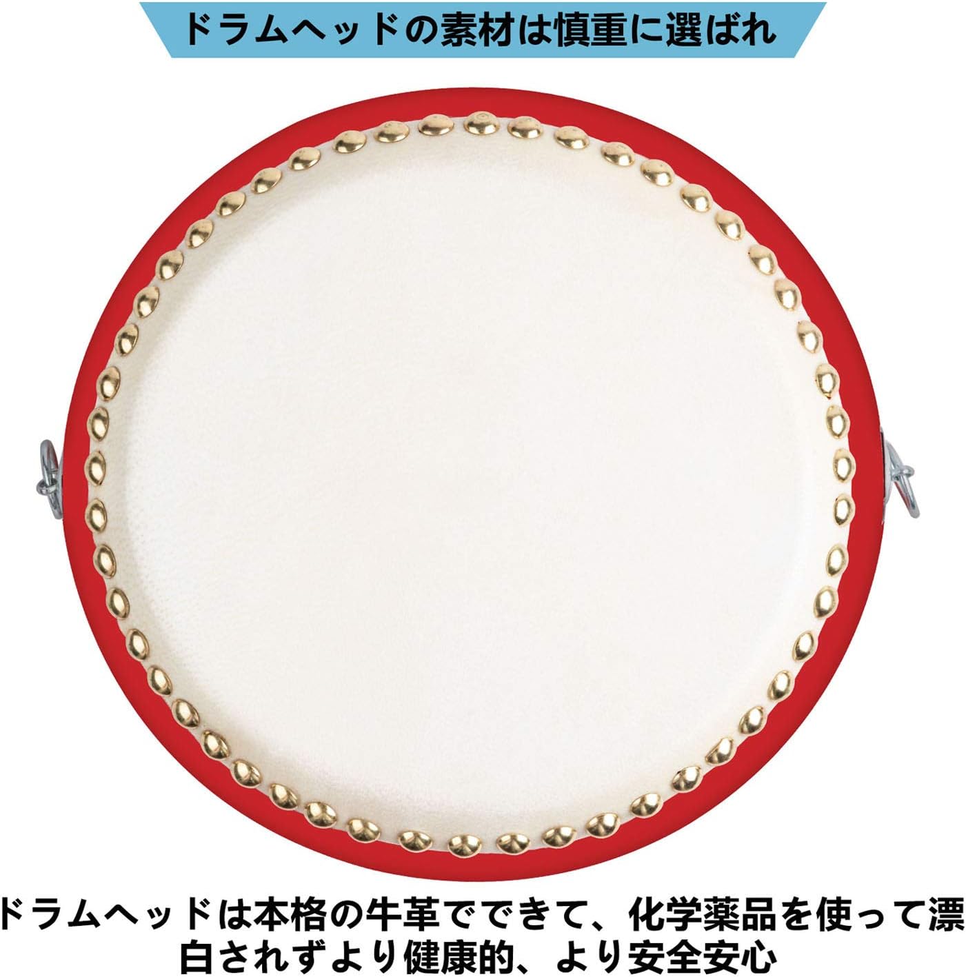 和太鼓セット 牛皮張 首掛けストラップ付き パーカッション 3インチ~10インチ マーチング 演奏会 お遊戯会 牛革 バチ 練習 盛り上げ 和太鼓 演奏 子供用 0歳~6歳以上 打楽器