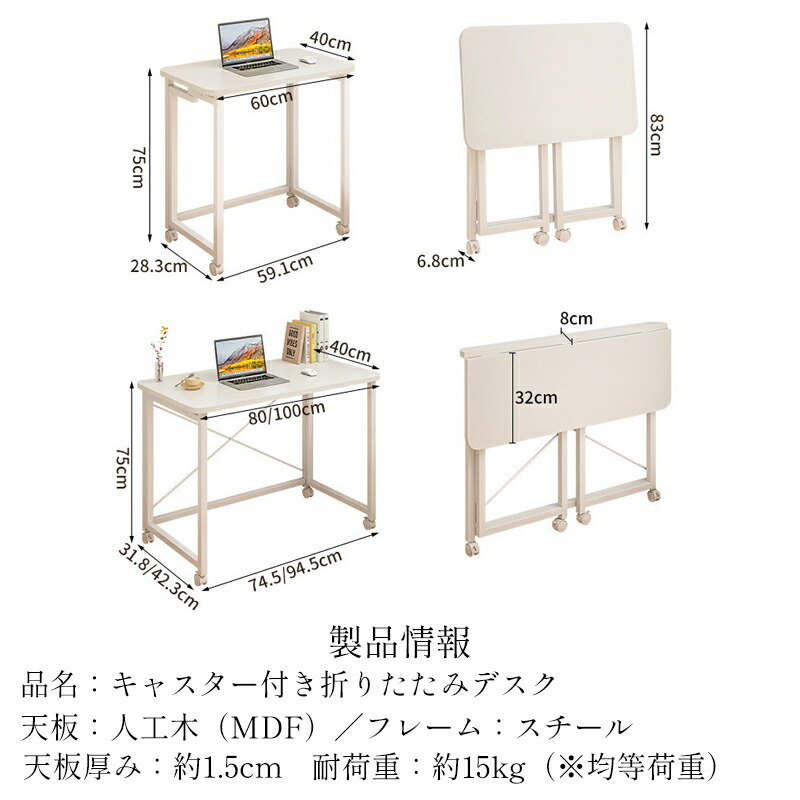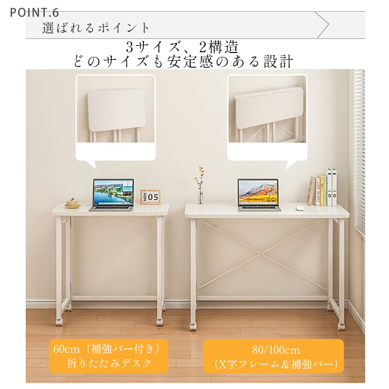折りたたみデスク パソコンデスク 狭い ホワイト ナチュラル 60*40cm 80*40cm 100*50cm