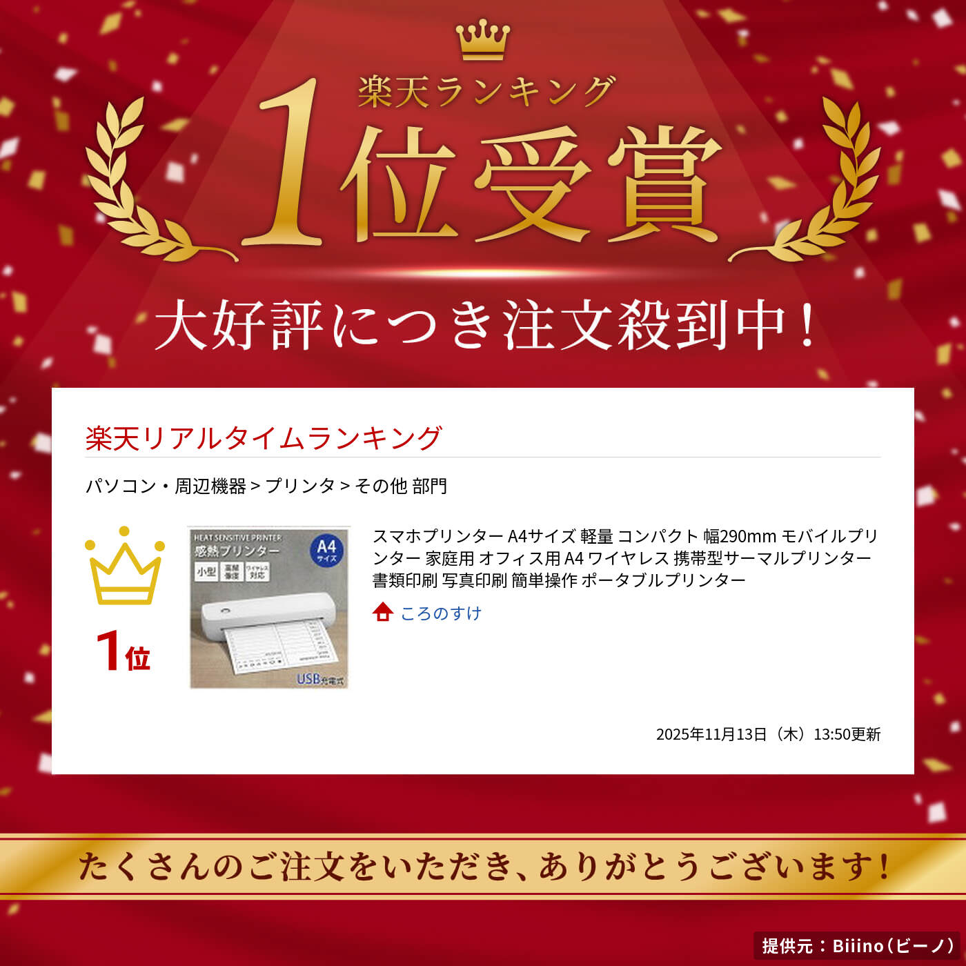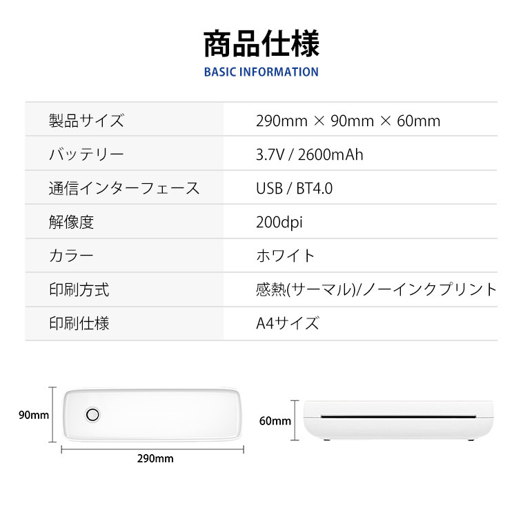 スマホプリンター A4サイズ 軽量 コ