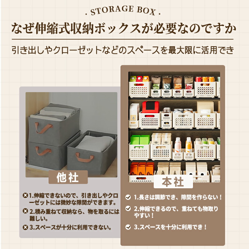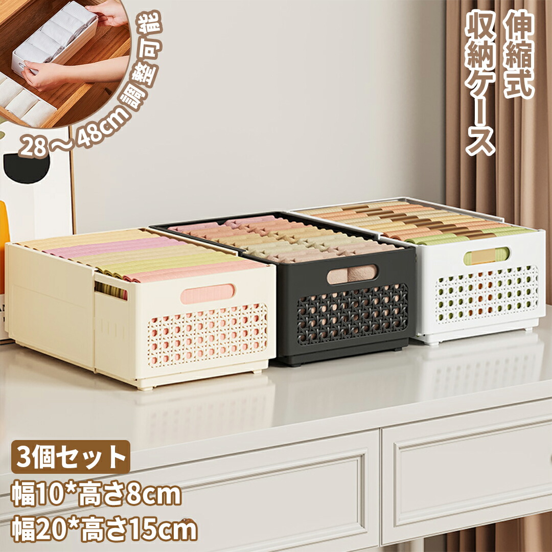 3個セット 収納ケース 伸縮 収納ボッ ホワイト ベージュ ブラック Sサイズ Mサイズ