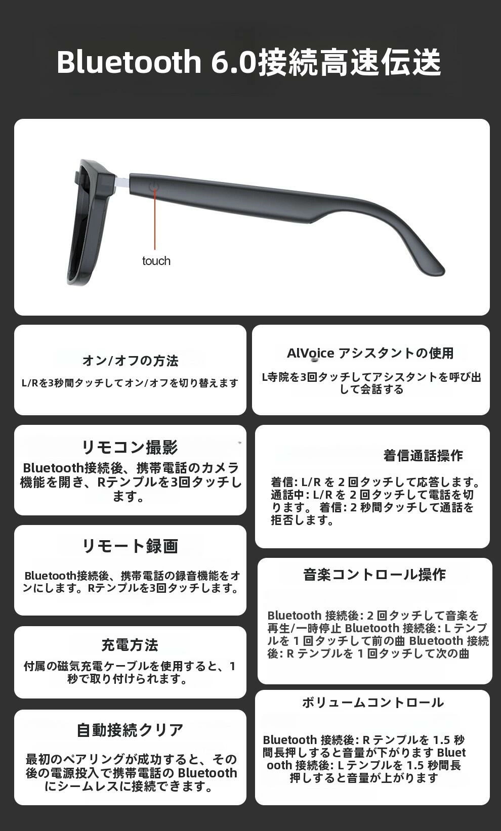 スマートグラス Bluetooth5. 眼鏡 サングラス サングラス 豊富な品揃え 変色調光 ブルーライトカット ブルーレンズ ブラック ホワイト