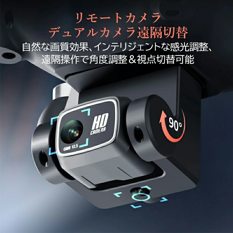 高画質双カメラシステム:前方カメラは手動で90°調整可能、映像記録や空中撮影を楽しめます。リアカメラとの組み合わせで、よりクリエイティブな視点を提供します。