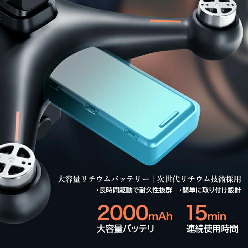 スマート機能:Wi-Fi接続に対応し、リアルタイムでの映像伝送、写真撮影、ビデオ記録が可能です。さらに急停止機能、軌道飛行、ワンタッチ周回飛行、インテリジェント追従機能など、豊富なモードを搭載しています。