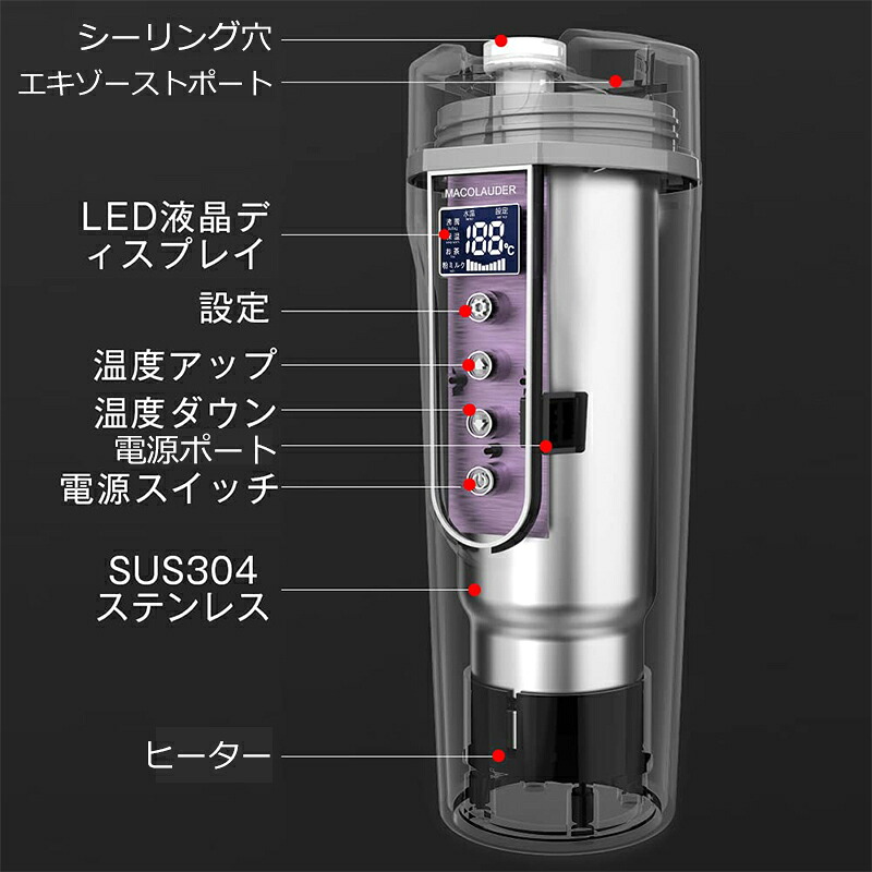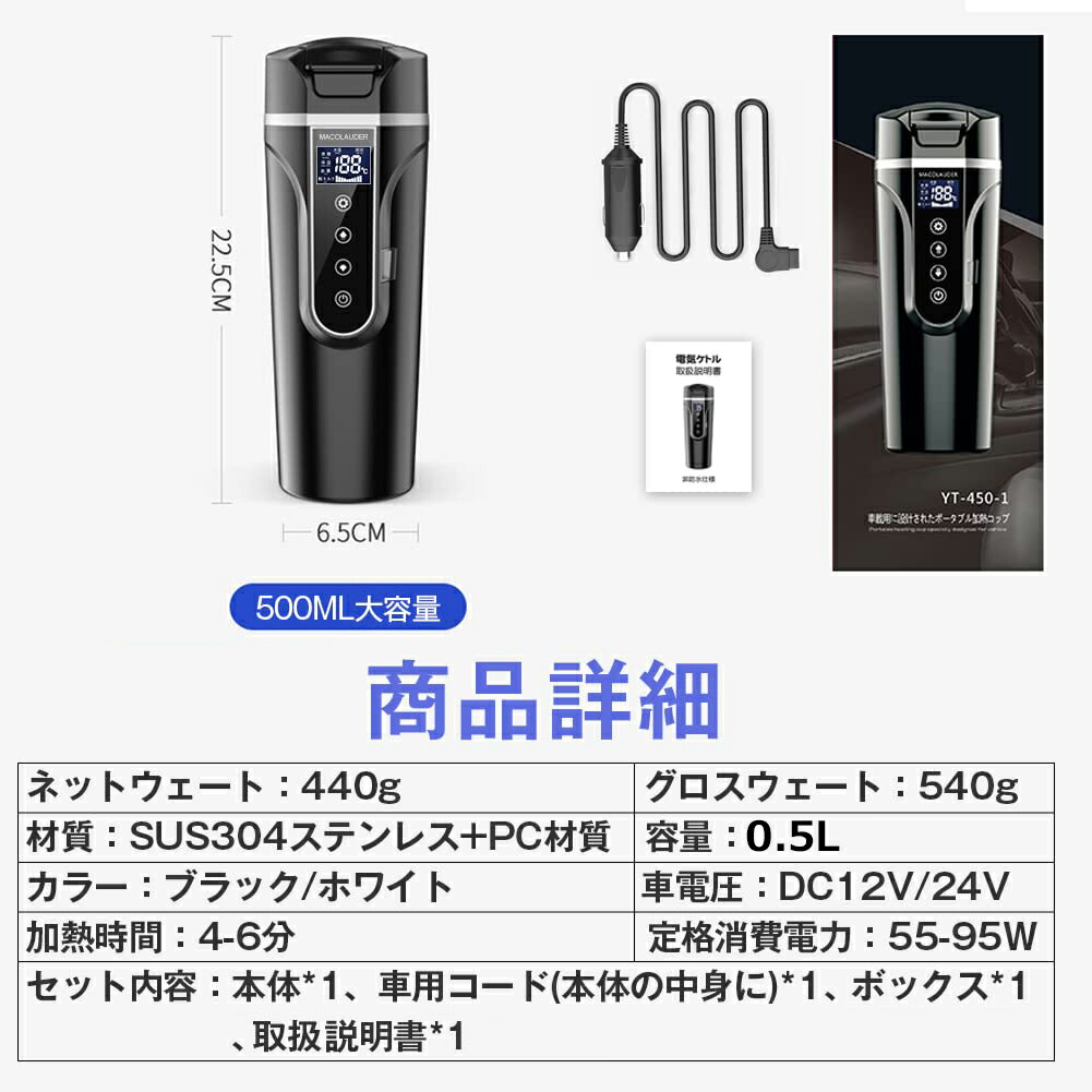 車 電気ケトル 保温機能付き 40℃ ホワイト ブラック