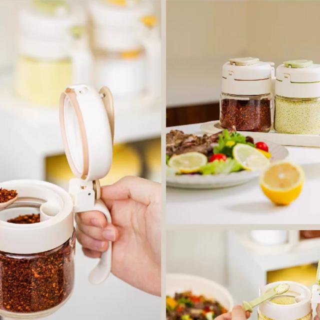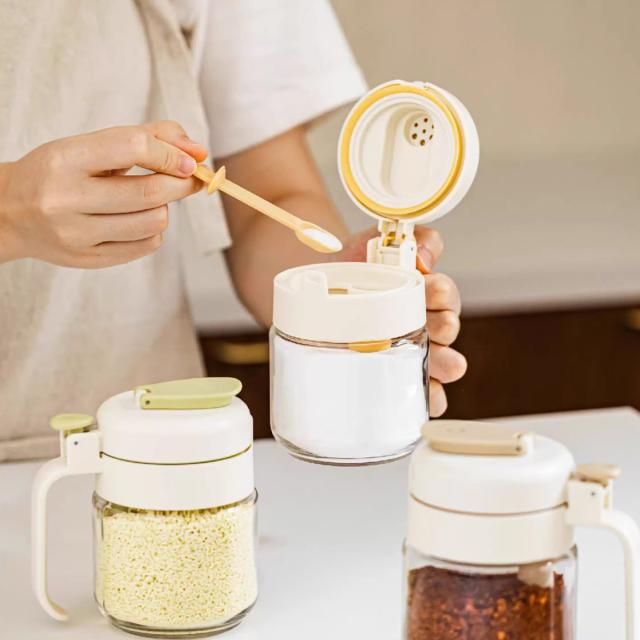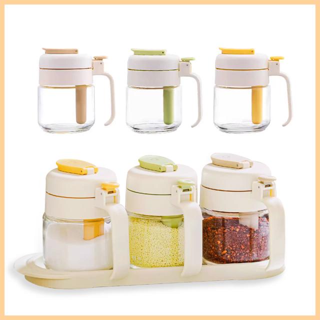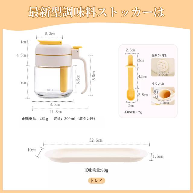 調味料入れ スプーン付き 調味料入れセ 保存容器 調味料入れ 調味料入れセット 豊富 イエロー グリーン ベージュ イエロー+グリーン イエロー+ベージュ グリーン+ベージュ 3色セット(トレイ付) 1点セット 2点セット 3点セット(トレイ付)