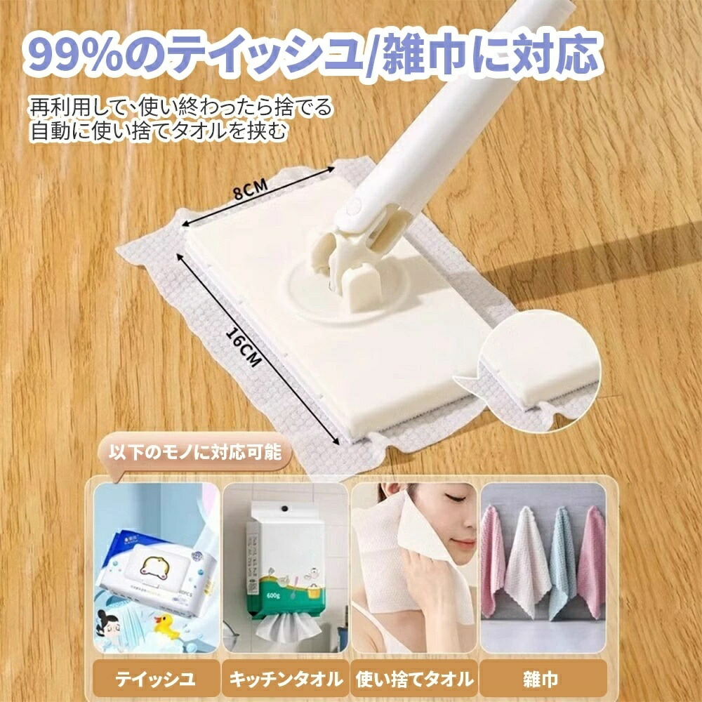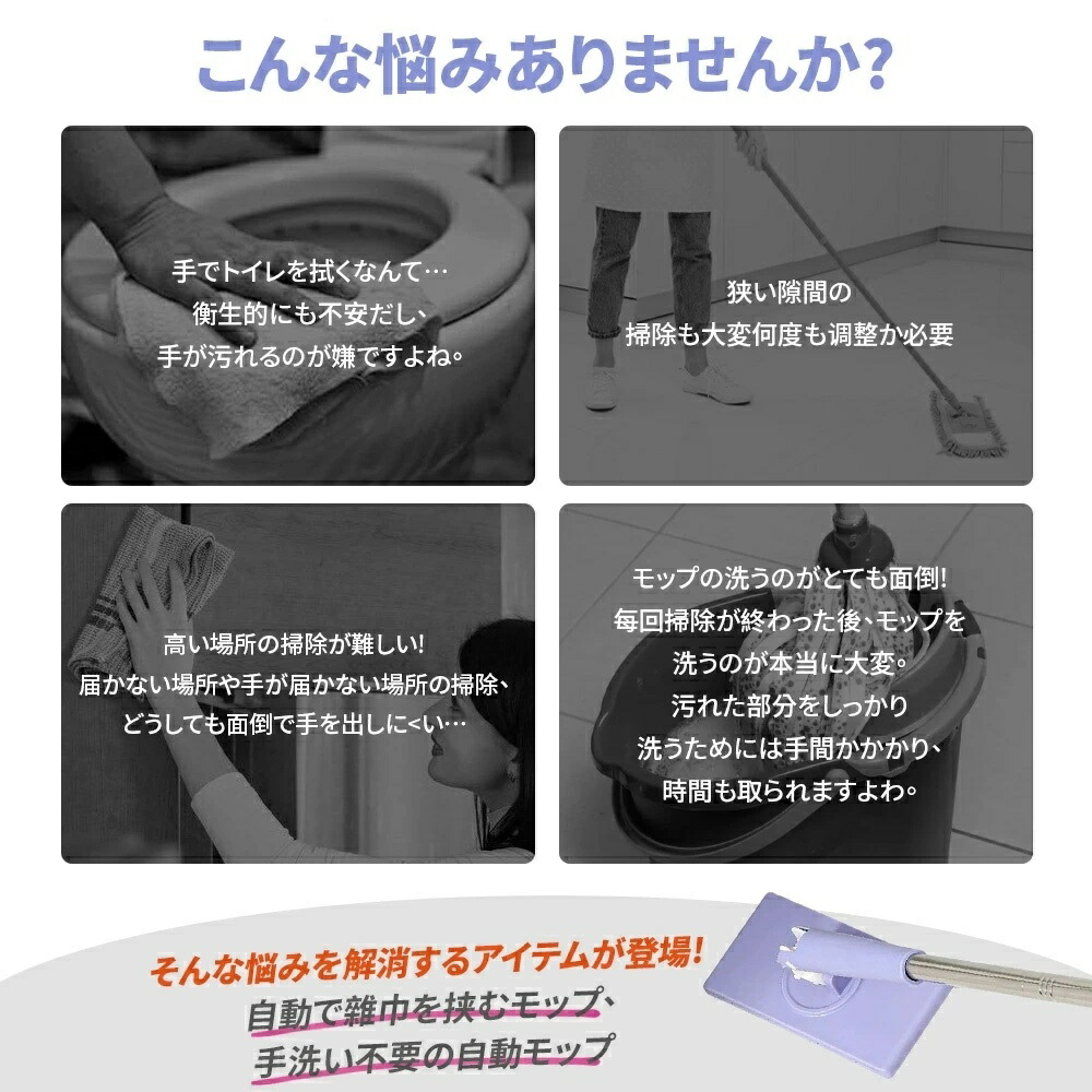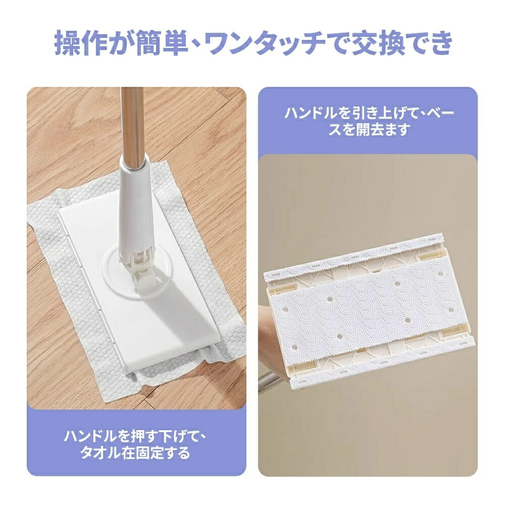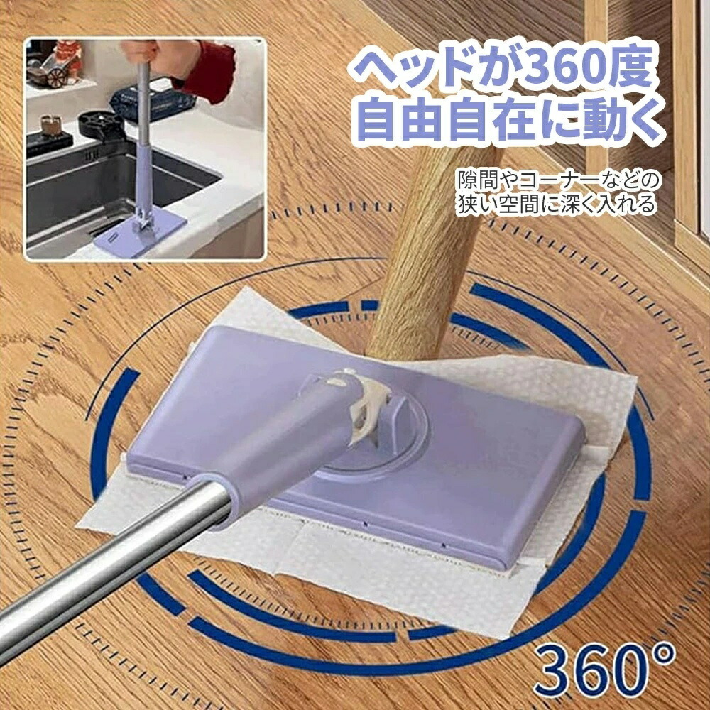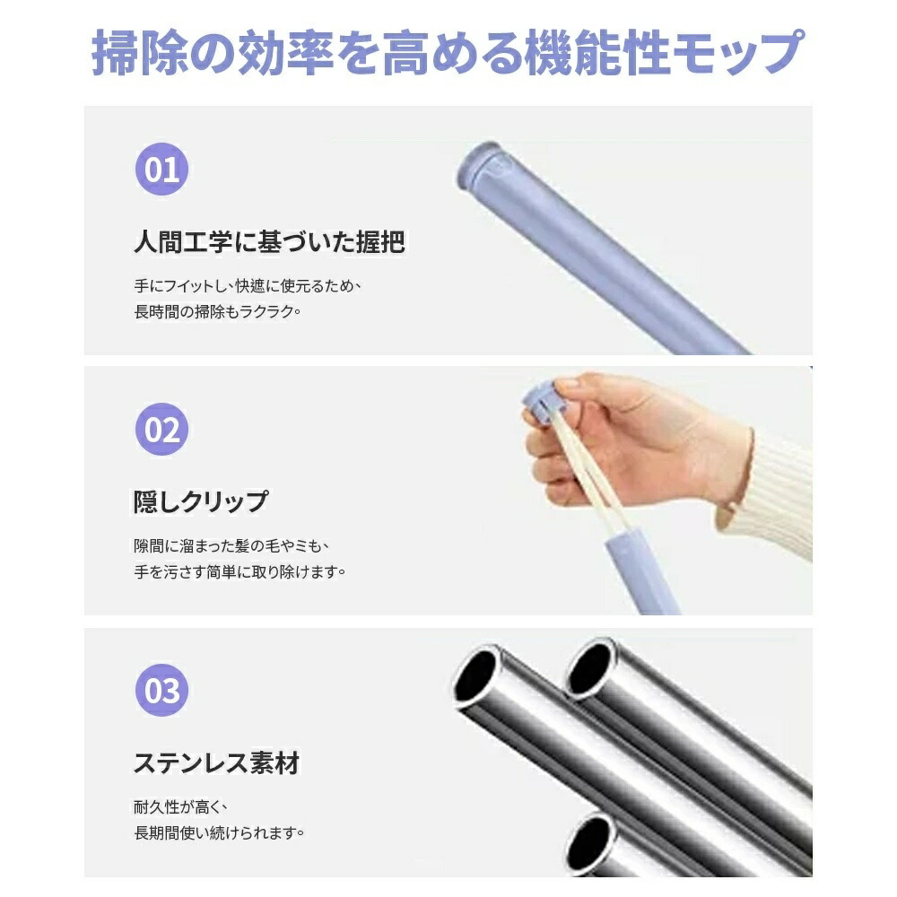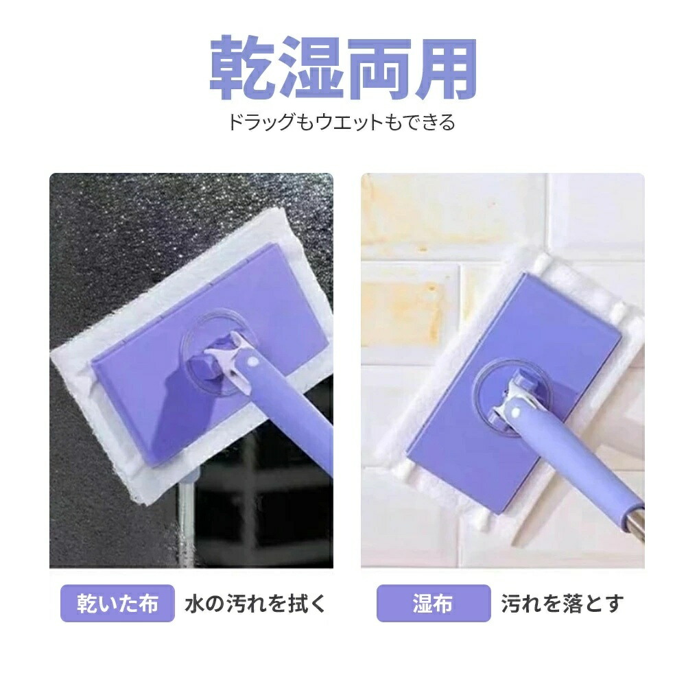 フラットモップ 乾湿両用 雑巾付き 自 日用品雑貨 文房具 手芸 続々登場 パープル ホワイト 70cm 93cm