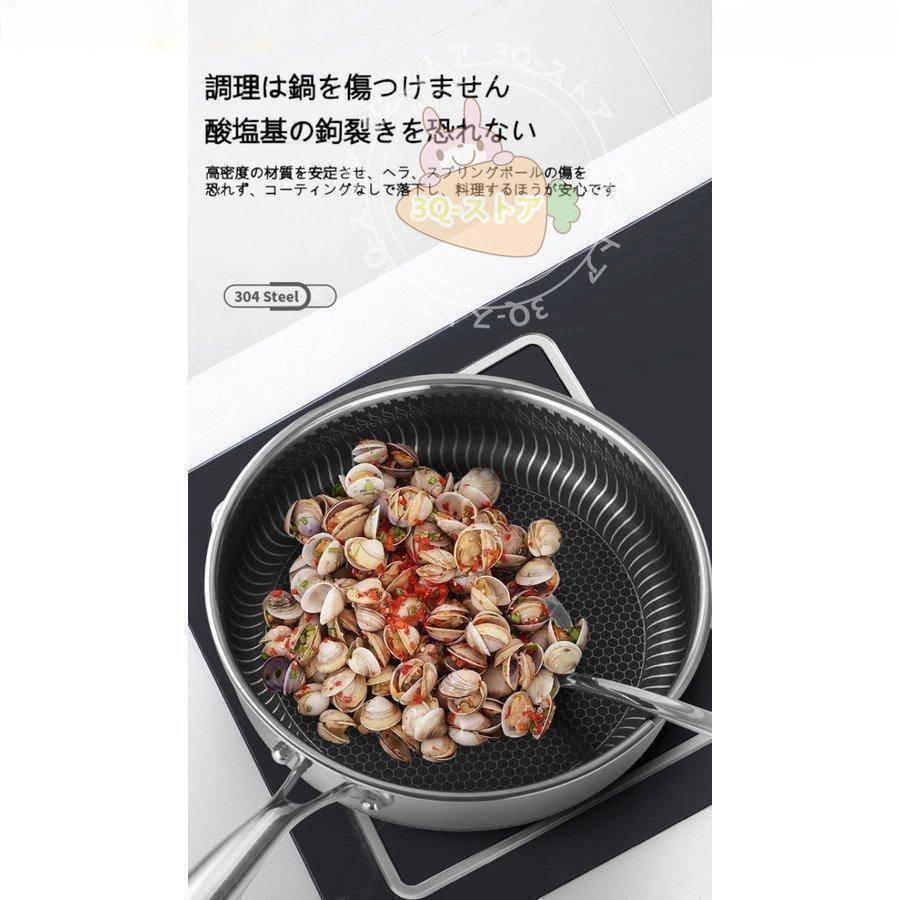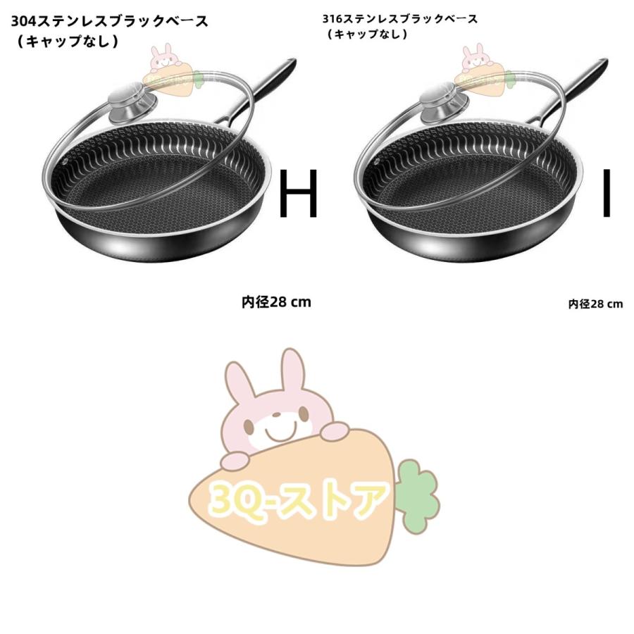 焦げ付き防止304ステンレス鋼フライパ A B C D E F G H I 24cm304ステンレス銀ベ一ス 24cm304ステンレスプラックベ一ス 26cm304ステンレス銀ベ一ス 26cm304ステンレスプラックベ一ス