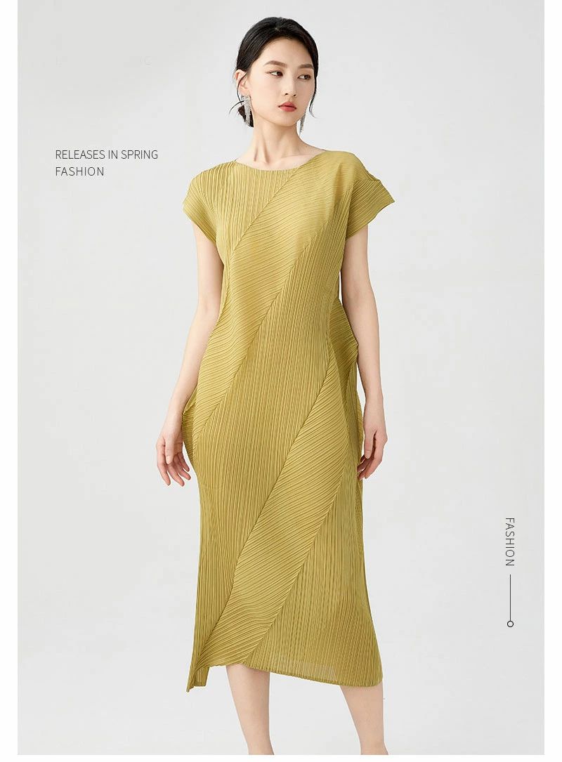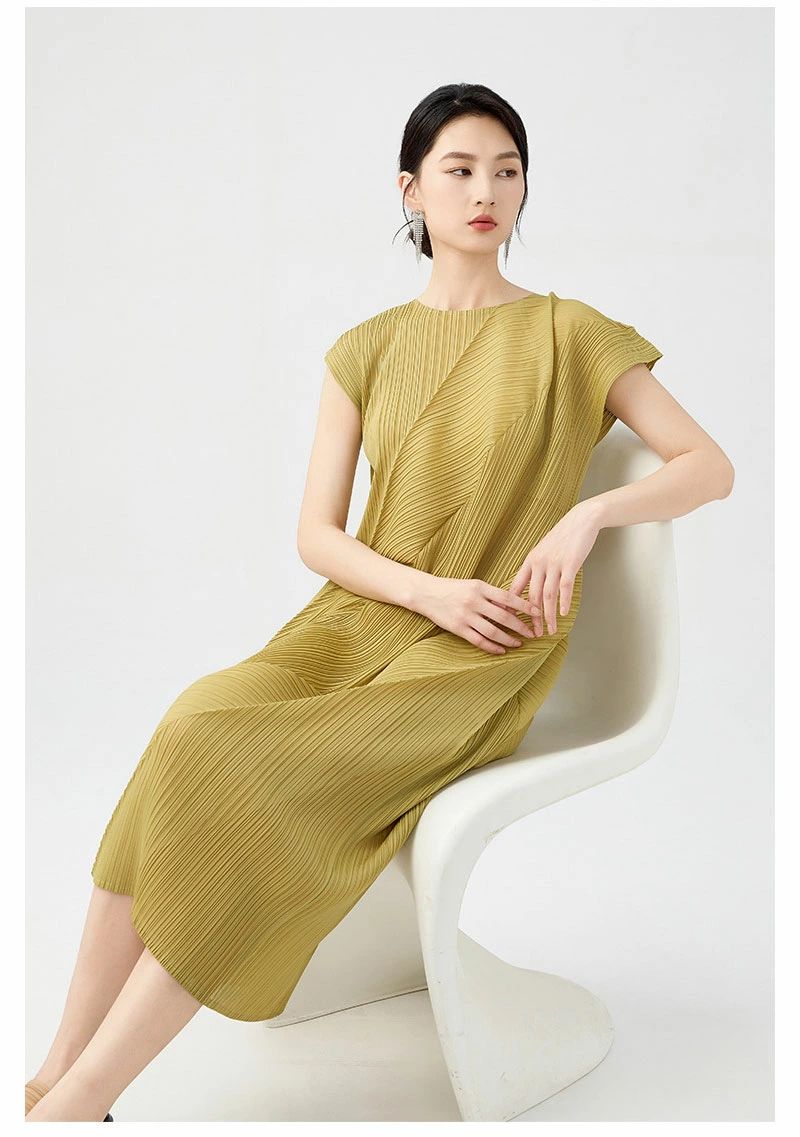 ワンピース レディース プリーツワンピ レディースファッション 新登場! イエロー パープル グレーブルー カーキ ベージュ ブルー グレー ブラック
