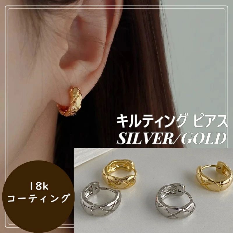 キルティング ピアス フープピアス サージカルステンレス 金属アレルギー アレルギーフリー シルバー ゴ 18K