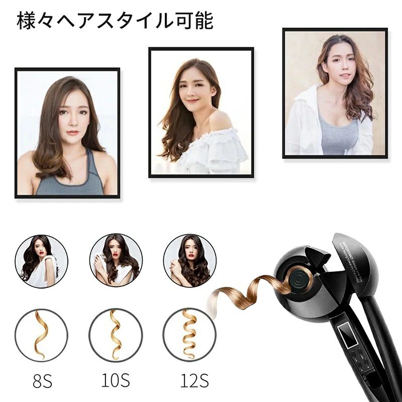 ヘアアイロン 自動カールアイロン オー ブラック ピンク