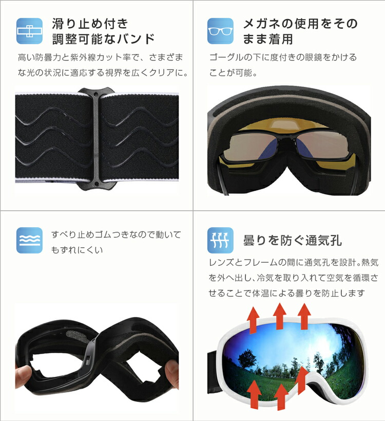 スキーゴーグル メガネ対応 スノーゴー スポーツ アウトドア 超目玉商品 アイスブルー レッド シルバー シルバー(ブラックフレーム)
