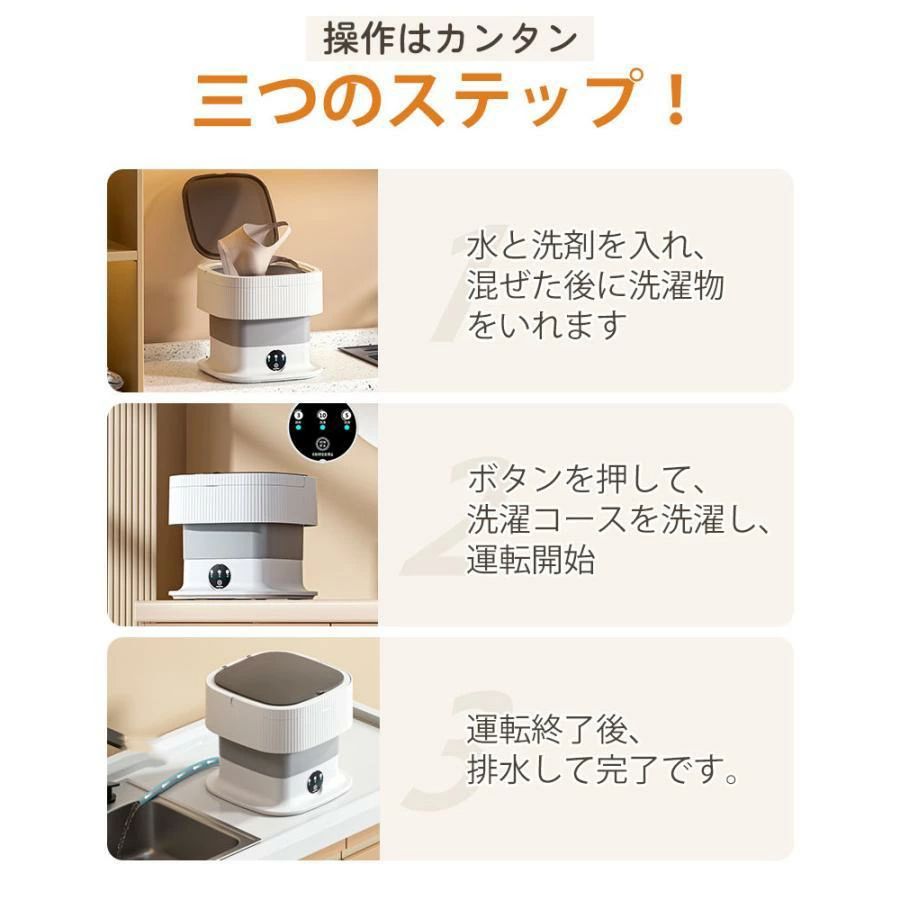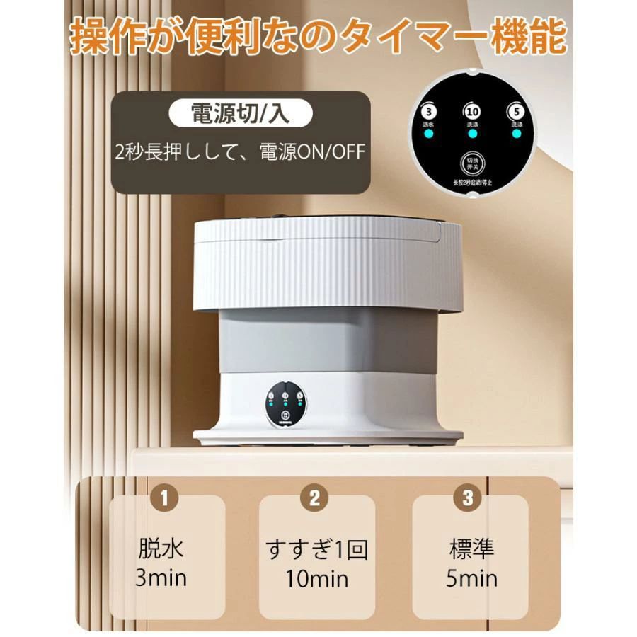 10L折りたたみ洗濯機 脱水機能付き グレー パープル