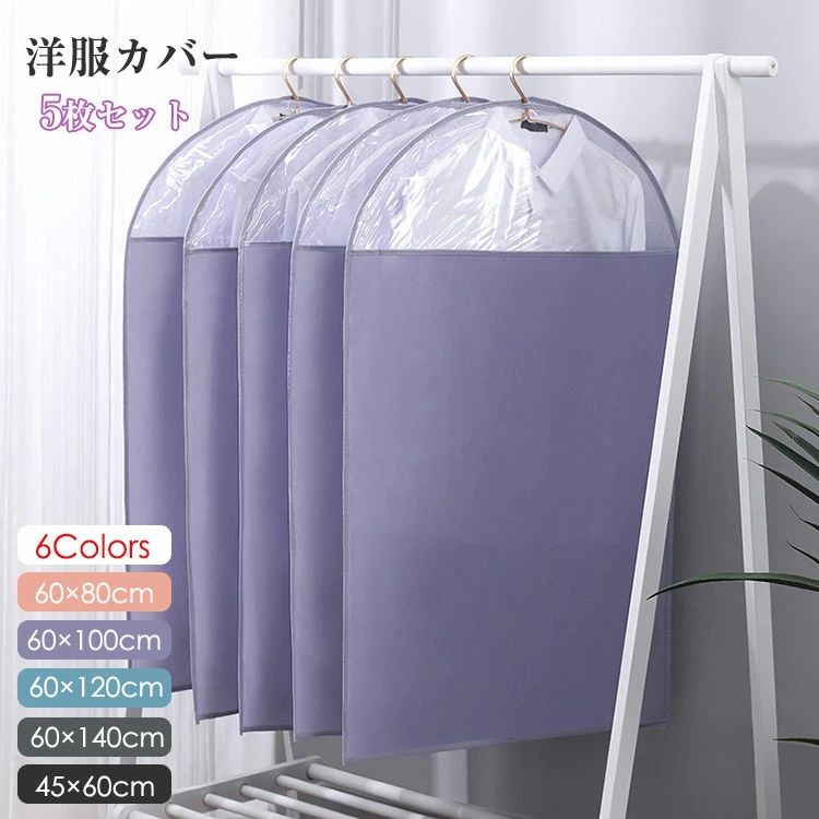 服カバー 5枚セット 洋服カバー 大人 パープル ブルー オレンジ ブラック グレー ホワイト 60×80cm(5枚セット) 60×100cm(5枚セット) 60×120cm(5枚セット) 60×140cm(5枚セット) 45×60cm(5枚セット)