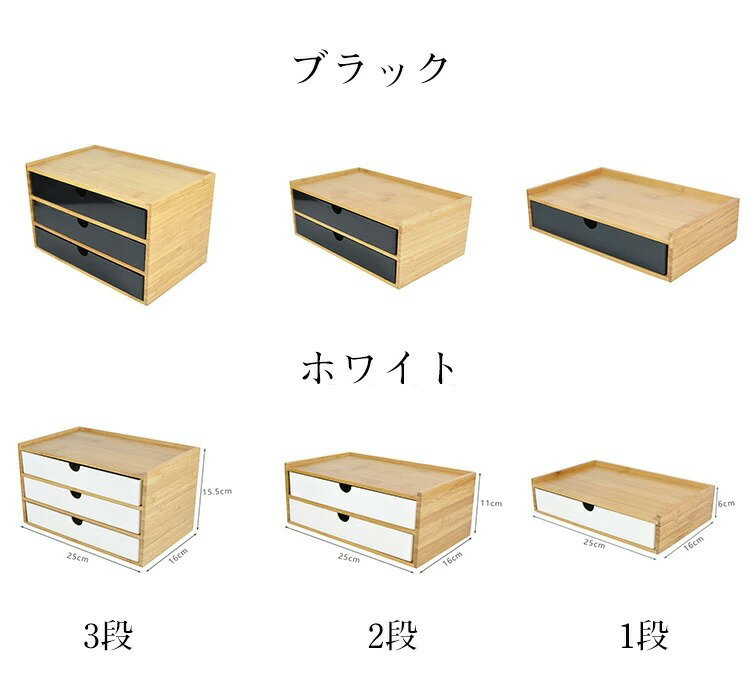 竹製 卓上収納 卓上チェスト 机上収納 1段(2680円) 2段(3350円) 3段(3950円) ホワイト ブラック