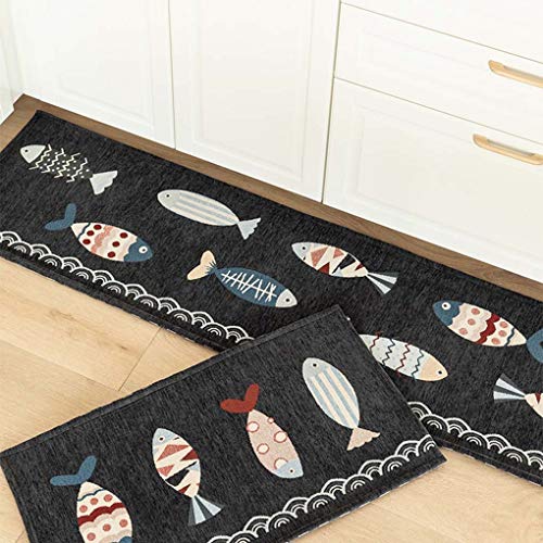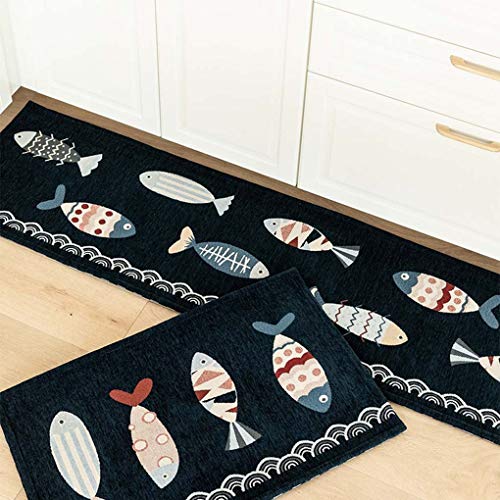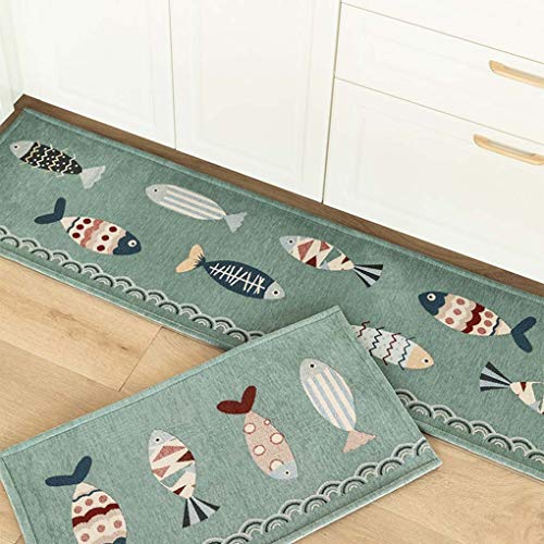 キッチンマット 80 ブルー すべり止め あらえる 魚柄 かわいい 台所マット おしゃれ 北欧 吸水 防ダニ 抗菌防臭 ずれない 洗いやすい 大判 床保護マット 廊下 ベランダ ベッドサイド 玄関