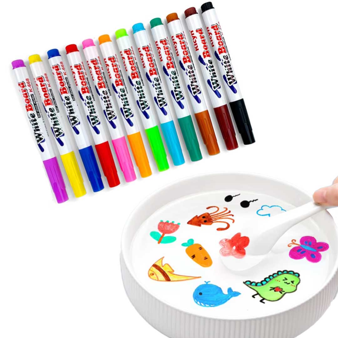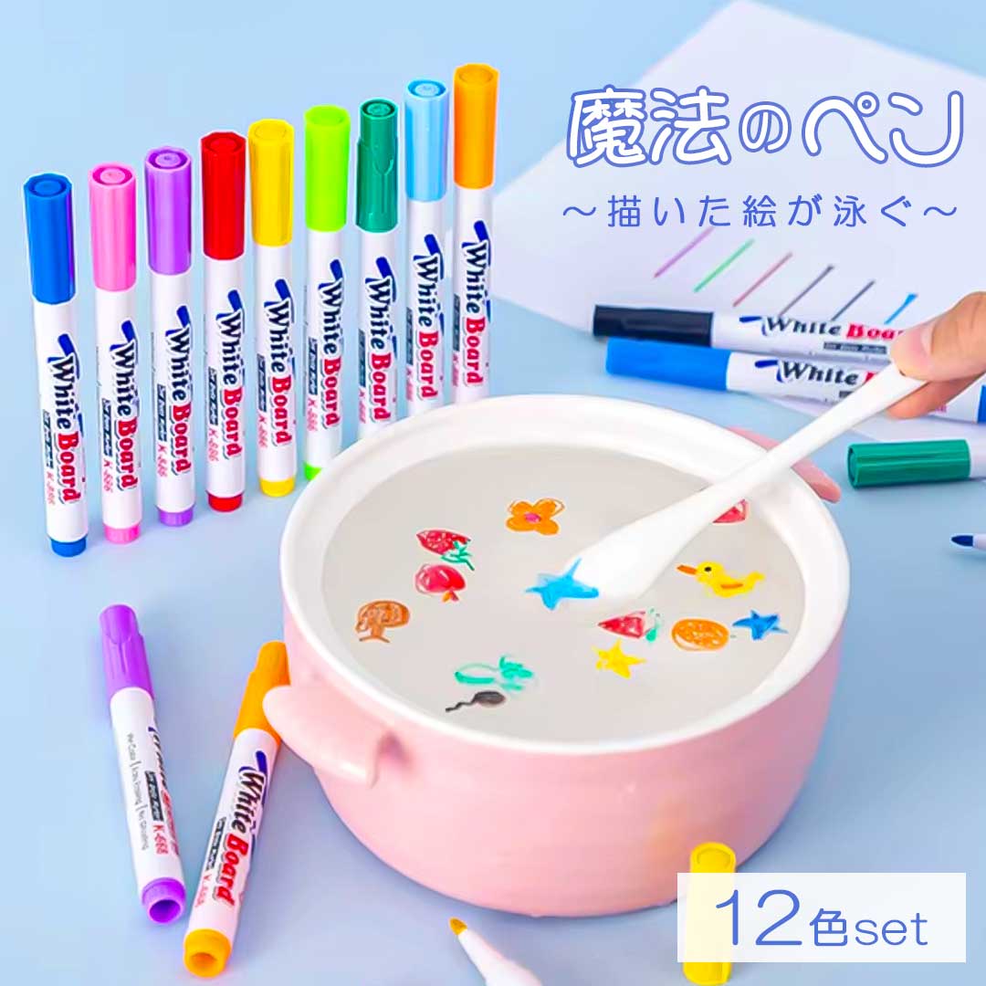 水彩画ペン 水に絵がかける ウォーターペン 12色 専用スプーン付き マジックウォーターペン 水性ペン 水性インク おえかき 描画 絵画 イラスト カラーペン 水彩ペン マーカーペン 水ペン