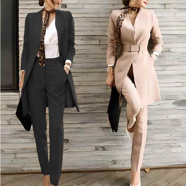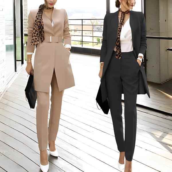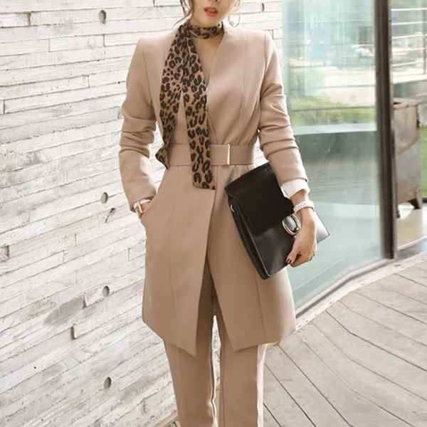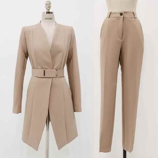 ノーカラー 長袖 細身 スリム ツーピ スーツ セットアップ パンツスーツ 通販 ベージュ ブラック Sセット Mセット Lセット XLセット