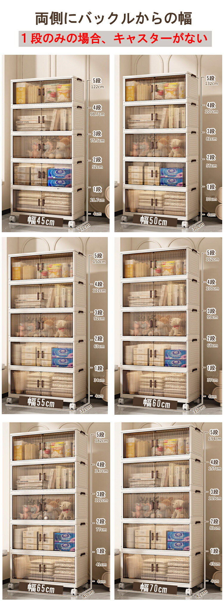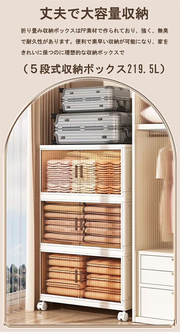 収納ボックス 折りたたみ 収納ケース 45cm 50cm 55cm 60cm 65cm 70cm 1段(キャスターなし) 2段 3段 4段 5段
