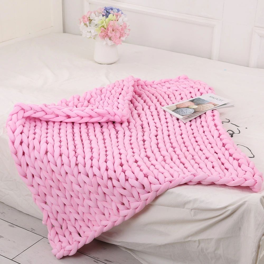 ブランケット チャンキーニットブランケ ピンク グレー コーラルピンク レイクブルー カーキ ベージュ ブルー 60×60 80×60 100×80 120×100